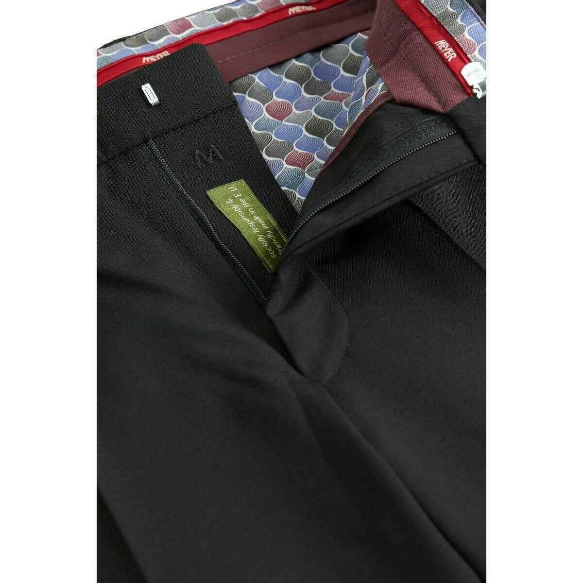 Manufactured from 53% polyester, 43% new wool (cruelty free) and 4% elastane are these black men's roma regular tropical trousers by the designer Meyer. Also the black trousers are designed in a plain pattern, All the trousers come complete with meyer tags. The Meyer Roma Regular Tropical Trousers - Black are of premium quality and will keep you cool in the summer and warm in the winter as the 4-way stretch fabric is temperature balancing and breathable. They offer maximum freedom of movement with an elasticated waistband and many features including a waistband hook with securing button, zip safety, rounded French pockets, coin pocket and buttoned back pockets. The high-quality interior design is sure to impress and being extremely easy to care for, they are the perfect pair of trousers for any occasion.