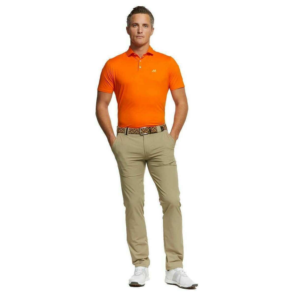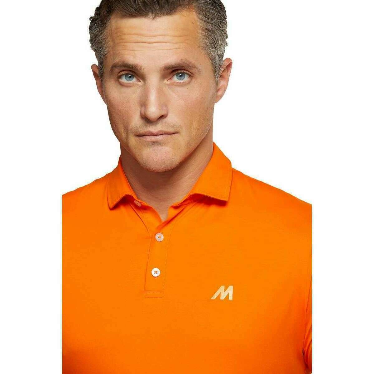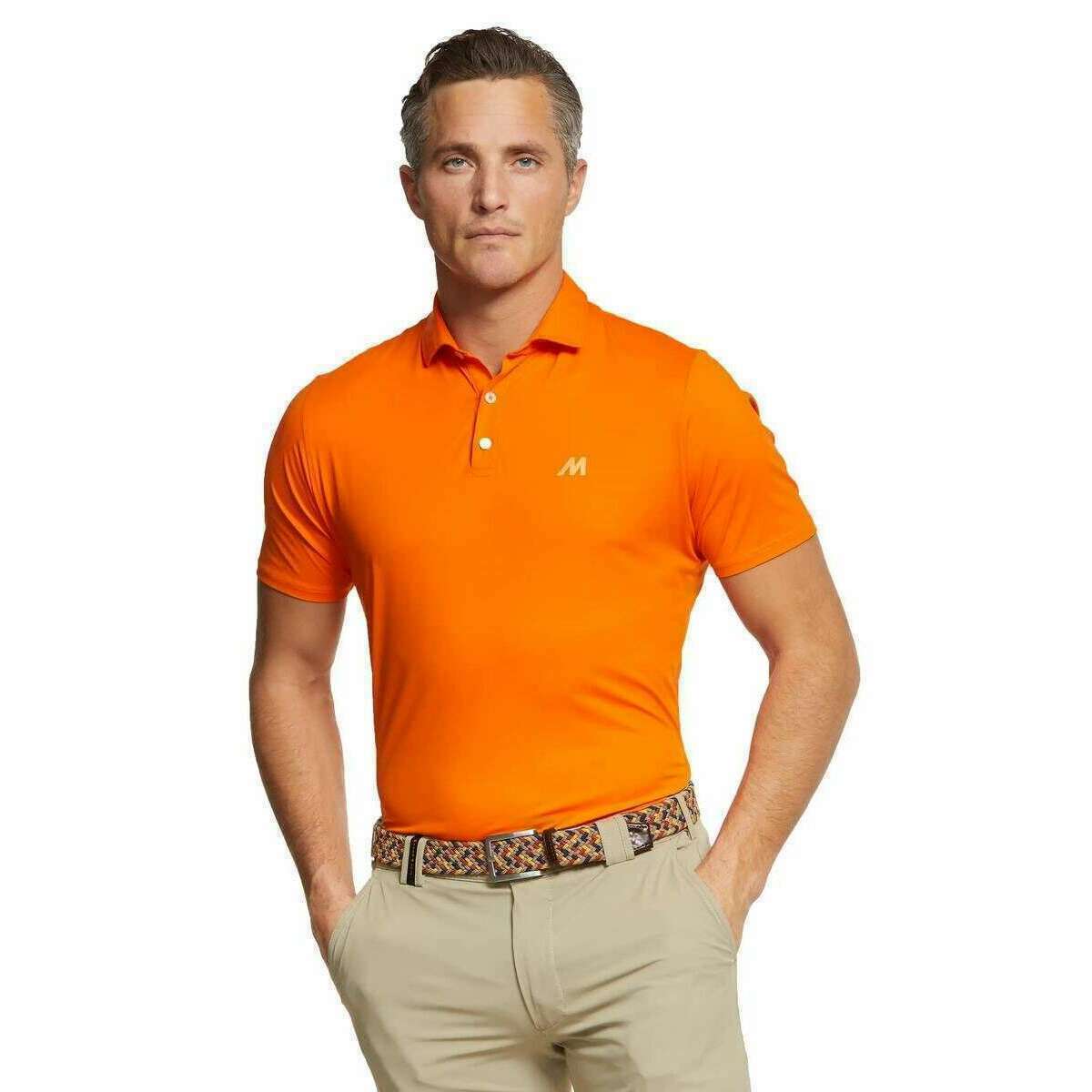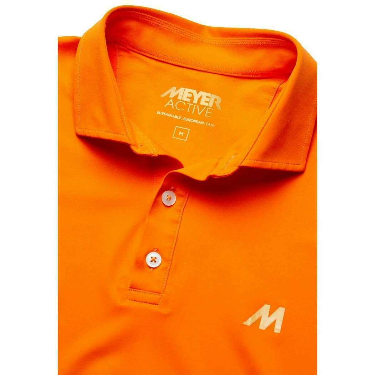 This men's tiger performance polo by the brand Meyer is made from 90% polyester and 10% elastane and is showcased in orange. Also the orange polo shirt is designed in a plain pattern, It is recommended to wash at 40 degrees to keep this polo shirt in good condition. All the polo shirts come complete with meyer tags. The Meyer Tiger Performance Polo - Orange has been beautifully made in Italy by Jersey Lomellina from a high-quality technical fabric with recycled fibres. The stunning material is breathable, quick-drying, sun cream resistant, retains its shape and has UV protection, so you can be sure to be well protected on your active days. The slim silhouette has the ‘perfect fit’ and is complete with a 3-button collar.
