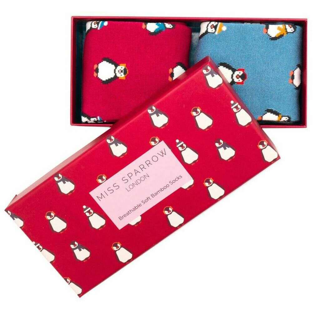 Miss Sparrow London 2 Pack Baby Penguins Sock Box - Red/Blue
