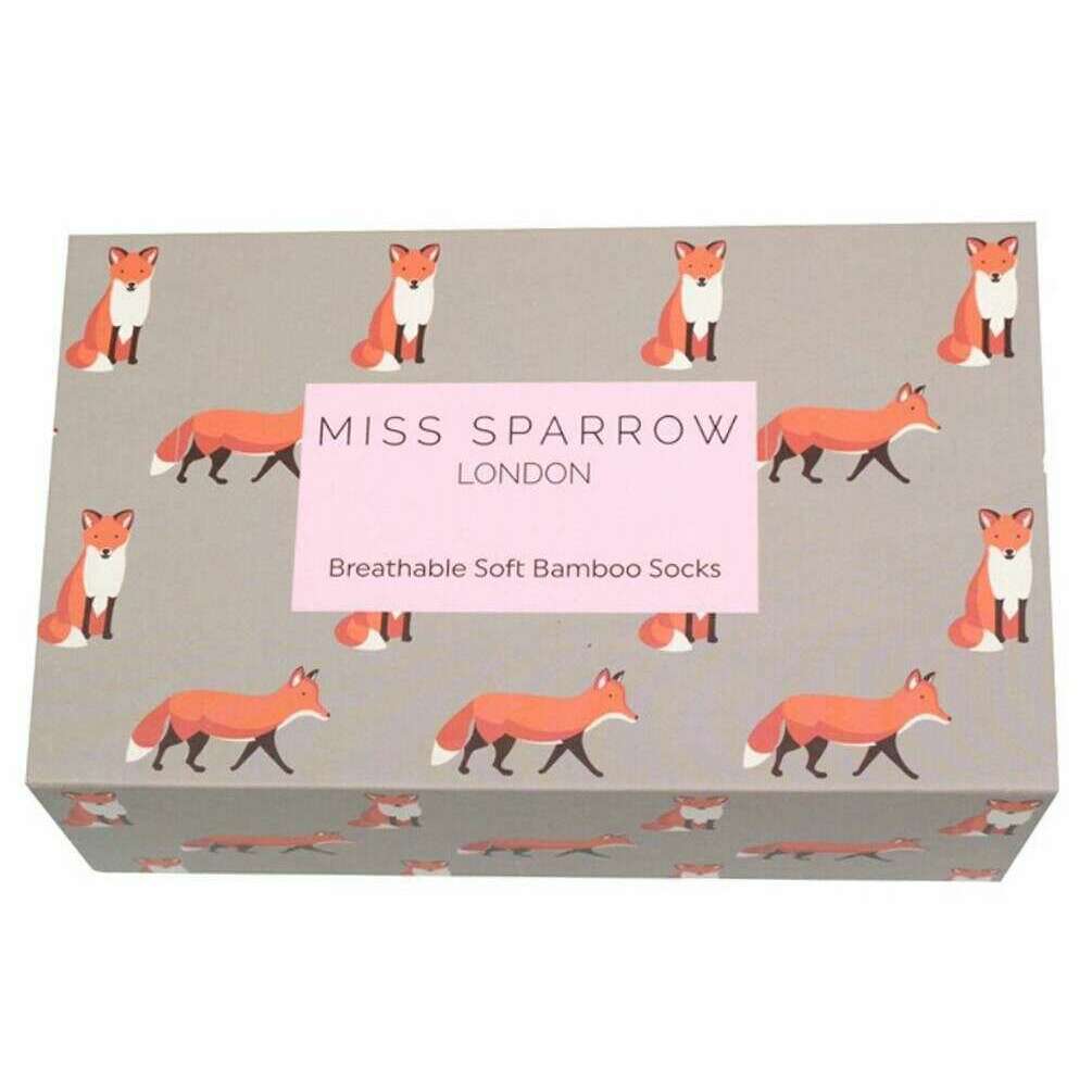 Miss Sparrow London 3 Pack Foxes Sock Box - Grey/Green/Yellow