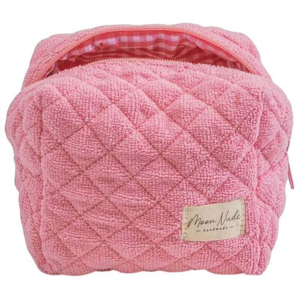 This women's candy mini makeup bag has been made from 100% cotton, featured in a pink colour and is from the brand Moon Nude. It measures 13cm(height) x 15cm(width) x 11cm(depth). It is recommended to wash by hand in cold water with a mild detergent, or maching wash inside out on a delicate cycle. to keep this bag in good condition. All the bags come complete with moon nude packaging. The Moon Nude Candy Mini Makeup Bag - Pink is an absolute necessity for your room or everyday bag. This makeup bag is guaranteed to keep all your most used products together and safe, whilst also being stylish and chic with its handmade quilted design.