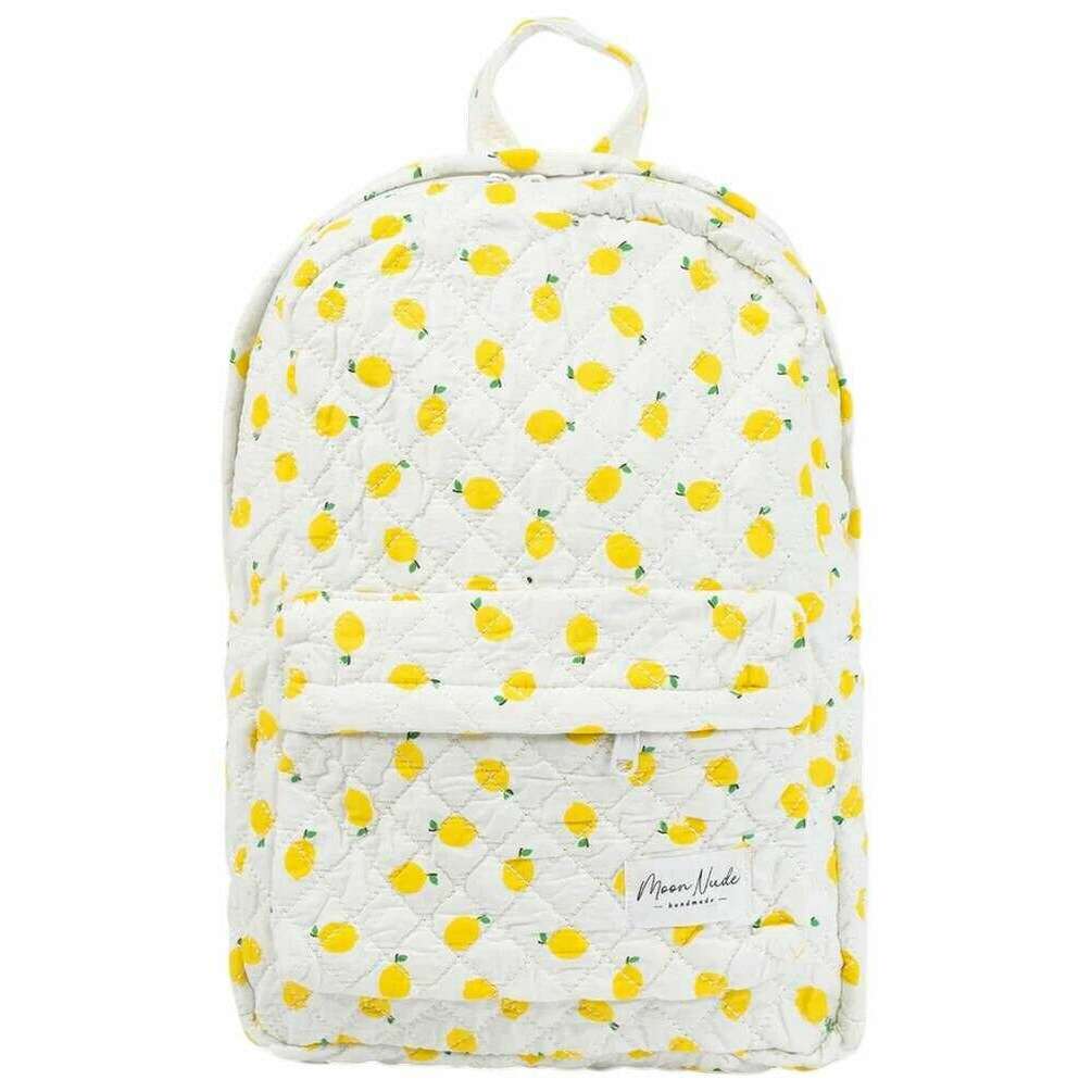 This women's lemonade backpack by the brand Moon Nude is made from 100% cotton and is showcased in white. It measures 40cm(height) x 28cm(width) x 13cm(depth). It is recommended to wash by hand in cold water with a mild detergent, or maching wash inside out on a delicate cycle. to keep this bag in good condition. All the bags come complete with moon nude packaging. The Moon Nude Lemonade Backpack - White/Yellow features a beautiful handmade quilted design. Perfect for on the go, whether that s for work or everyday use. This bag has an exterior pocket with zip, perfect for any bits and bobs you may have. The interior is spacious and offers a back compartment for your laptop or tablet.