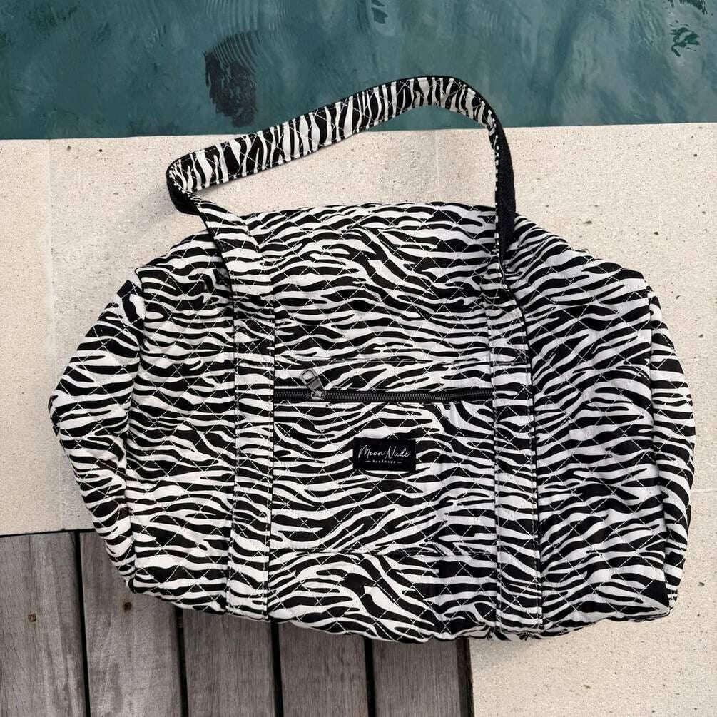 Designer Moon Nude has brought you this women's 100% cotton bag using white/black tones. It measures 30cm(height) x 50cm(width) x 28cm(depth). It is recommended to wash by hand in cold water with a mild detergent, or maching wash inside out on a delicate cycle. to keep this bag in good condition. All the bags come complete with moon nude packaging. The Moon Nude Noir Large Duffel Bag - White/Black features a beautiful handmade quilted design. This bag features an exterior zip pocket, a spacious interior and two large handles, perfect for weekend getaways or carrying lots of belongings.