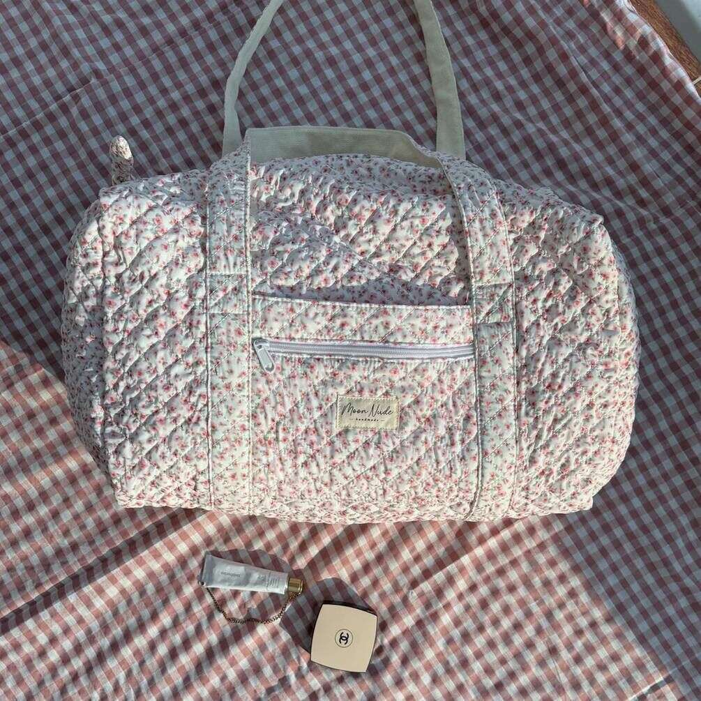Using white 100% cotton, this peony large duffel bag by Moon Nude is perfect for women and a must have. It measures 30cm(height) x 50cm(width) x 28cm(depth). It is recommended to wash by hand in cold water with a mild detergent, or maching wash inside out on a delicate cycle. to keep this bag in good condition. All the bags come complete with moon nude packaging. The Moon Nude Peony Large Duffel Bag - White/Red/Green features a beautiful handmade quilted design. This bag features an exterior zip pocket, a spacious interior and two large handles, perfect for weekend getaways or carrying lots of belongings.