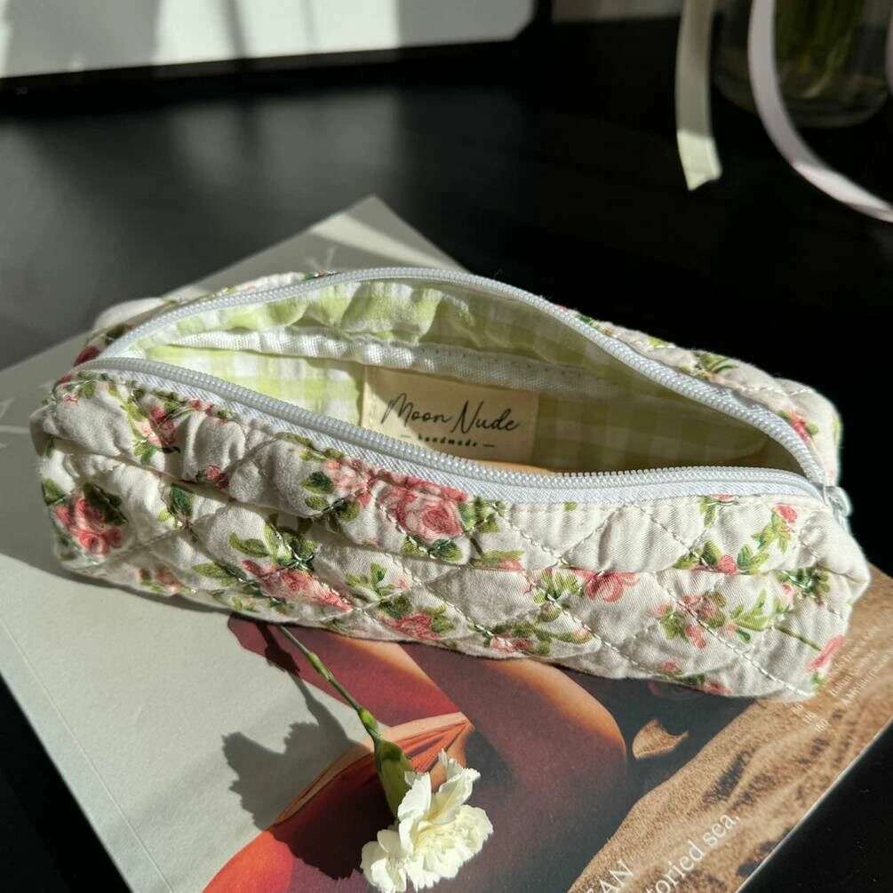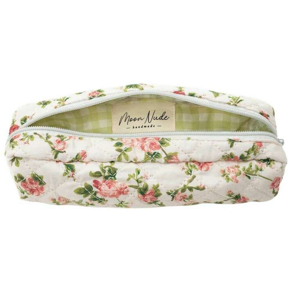 Introducing this women's roze pencil case by Moon Nude, it is manufactured from 100% cotton in a white/pink/green colour. It measures 7cm(height) x 24cm(width) x 6cm(depth). It is recommended to wash by hand in cold water with a mild detergent, or maching wash inside out on a delicate cycle. to keep this pencil case in good condition. All the pencil cases come complete with moon nude packaging. The Moon Nude Roze Pencil Case - White/Pink/Green is an absolute necessity for work or school. This pencil case is guaranteed to keep all your stationary in one place, whilst also being stylish and chic with its handmade quilted design.