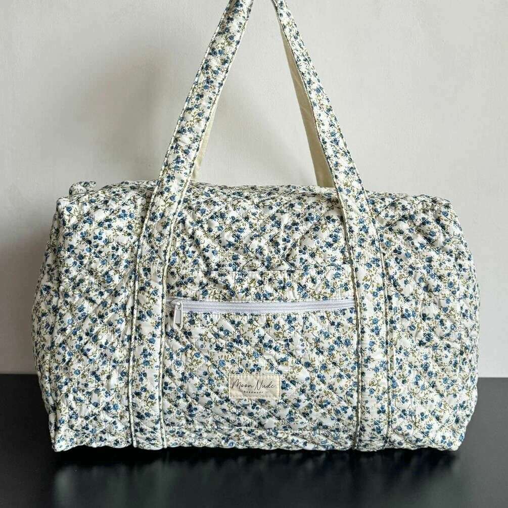 This women's spring large duffel bag has been made from 100% cotton, featured in a blue colour and is from the brand Moon Nude. It measures 30cm(height) x 50cm(width) x 28cm(depth). It is recommended to wash by hand in cold water with a mild detergent, or maching wash inside out on a delicate cycle. to keep this bag in good condition. All the bags come complete with moon nude packaging. The Moon Nude Spring Large Duffel Bag - Blue/Green features a beautiful handmade quilted design. This bag features an exterior zip pocket, a spacious interior and two large handles, perfect for weekend getaways or carrying lots of belongings.