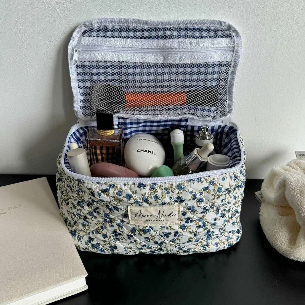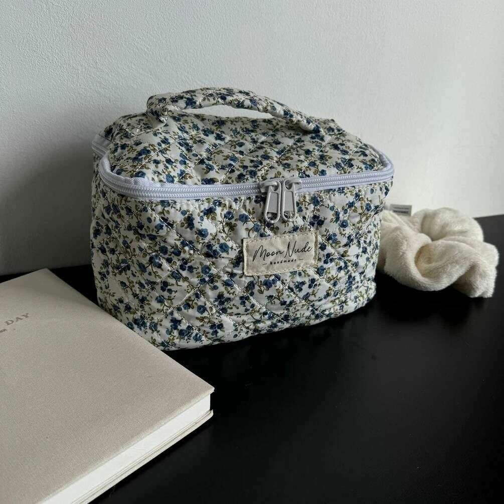 This well made women's spring vanity bag from Moon Nude comes in a white/blue/green colour and is manufactured from 100% cotton. It measures 16cm(height) x 22cm(width) x 14cm(depth). It is recommended to wash by hand in cold water with a mild detergent, or maching wash inside out on a delicate cycle. to keep this bag in good condition. All the bags come complete with moon nude packaging. The Moon Nude Spring Vanity Bag - White/Blue/Green is an absolute necessity for travelling or everyday use. This vanity bag is guaranteed to keep all your makeup or skin care in one place, whilst also being stylish and fashionable with its handmade quilted design.