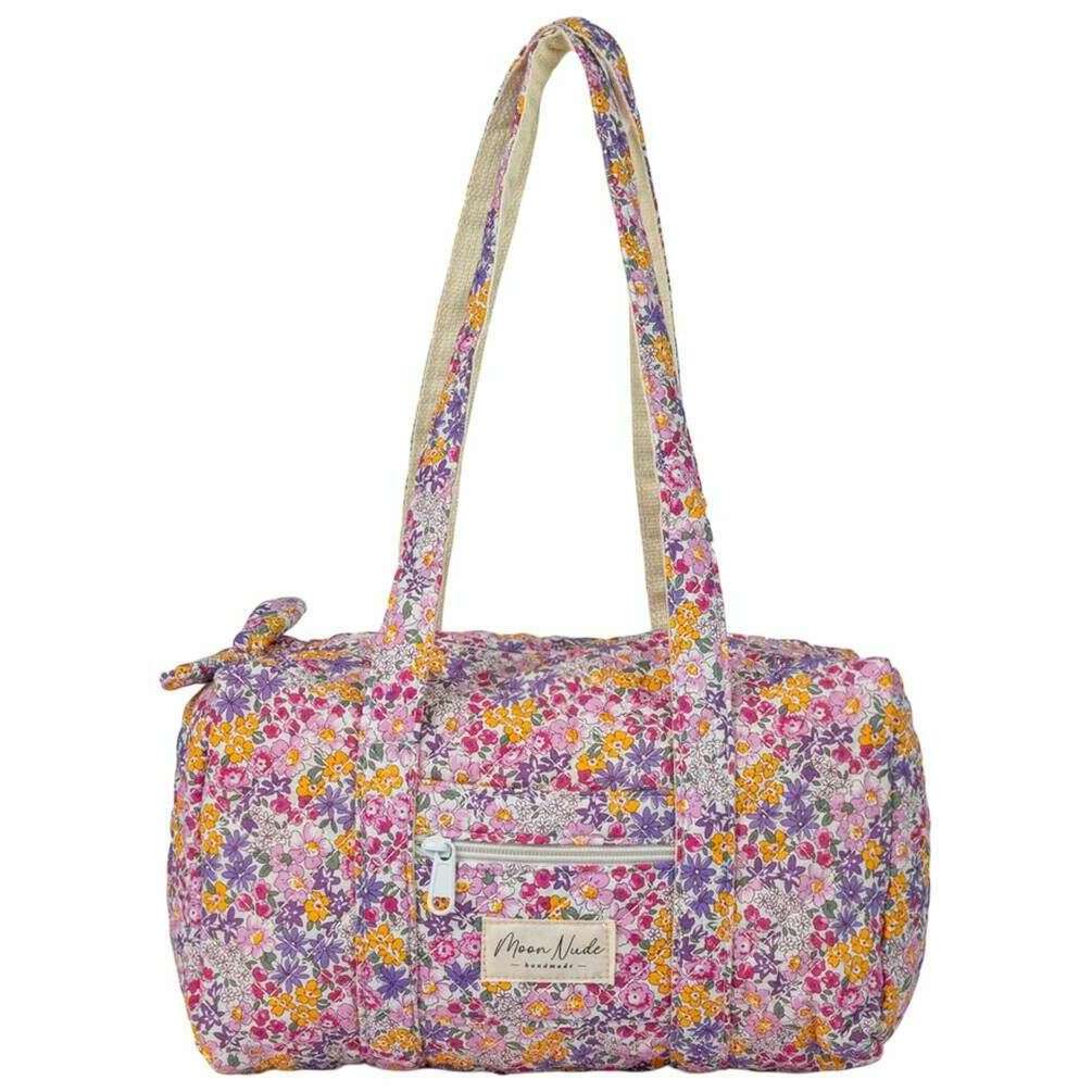 Designer Moon Nude has brought you this women's 100% cotton bag using purple/yellow/pink tones. It measures 18cm(height) x 31cm(width) x 18cm(depth). It is recommended to wash by hand in cold water with a mild detergent, or maching wash inside out on a delicate cycle. to keep this bag in good condition. All the bags come complete with moon nude packaging. The Moon Nude Summer Mini Duffel Bag - Purple/Yellow/Pink features a beautiful handmade quilted design. This bag features an exterior zip pocket, a spacious interior and two large handles, perfect for a casual going out bag or as a gift.