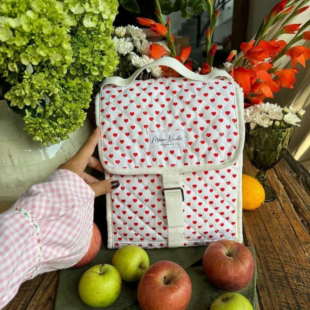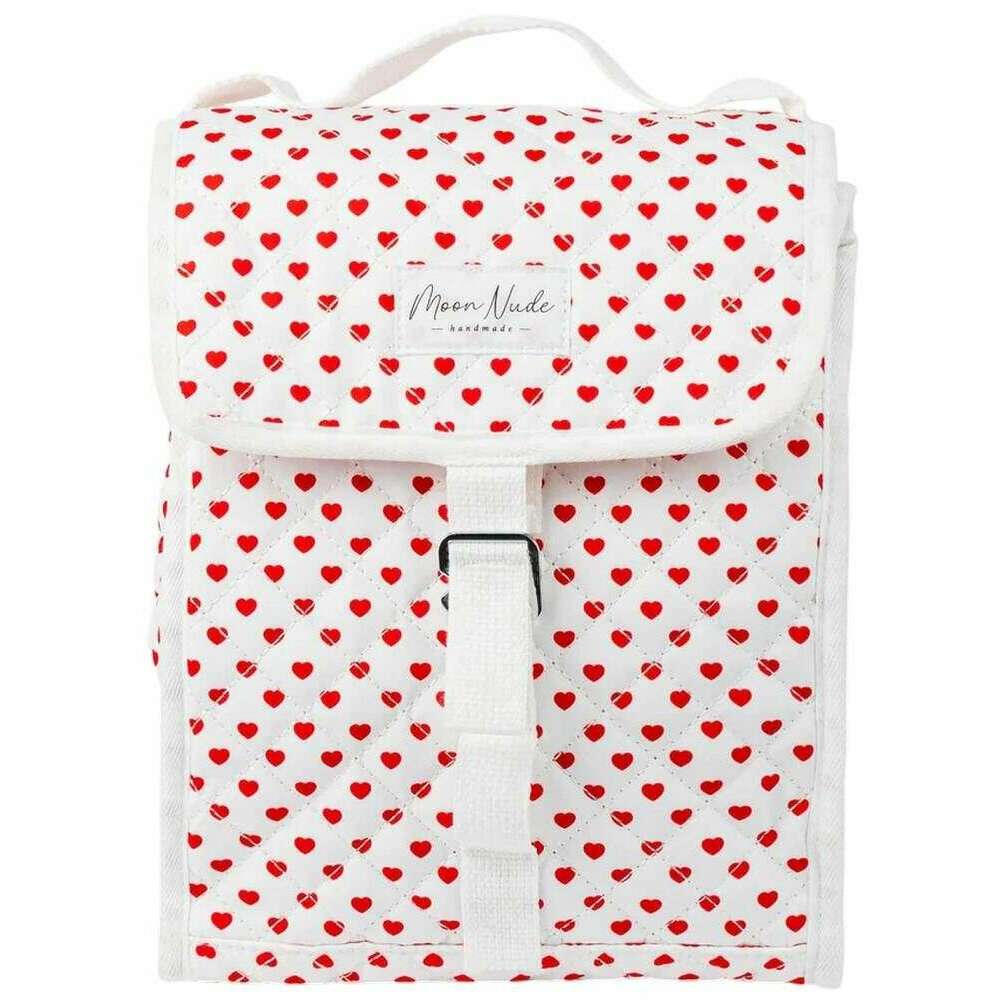 Designer Moon Nude has brought you this women's 100% cotton bag using white/red tones. It measures 28cm(height) x 22.5cm(width) x 17.5cm(depth). It is recommended to wash by hand in cold water with a mild detergent, or maching wash inside out on a delicate cycle. to keep this bag in good condition. All the bags come complete with moon nude packaging. The Moon Nude Valentine Lunch Bag - White/Red is a must have when travelling to work or for kid s lunches. This lunch bag has an insulated inside so will keep your hot stuff hot and your cold things cold! This bag also features a beautiful handmade quilted design, sure to catch the eyes of everyone you know.