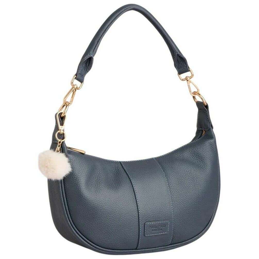 This women's sutton sling bag by the brand Pom Pom London is made from 100% full-grain leather and is showcased in blue. It measures 20cm(height) x 32cm(width) x 10cm(depth). All the bags come complete with pom pom london packaging. The Pom Pom London Sutton Sling Bag - Slate Blue is designed to be an everyday essential, combining modern design with timeless appeal. Its crescent shape and soft, flowing lines create a silhouette that feels both contemporary and classic, making it a versatile choice for daily wear. Spacious enough to hold all your essentials it ensures comfort throughout the day. Each bag is individually handmade, resulting in a luxurious finish that showcases refined craftsmanship and attention to detail. The design allows the wearer to carry it their way, thanks to a detachable and adjustable leather strap that provides a comfortable crossbody fit, paired with a detachable rolled edge shoulder strap for a structured over the shoulder option. Inside, the Sutton Sling offers thoughtful organisation with an internal zip pocket and an open side pocket, ensuring essentials stay neatly arranged and easy to reach. Perfect for any occasion, the Sutton Sling is ready to follow wherever the day leads.