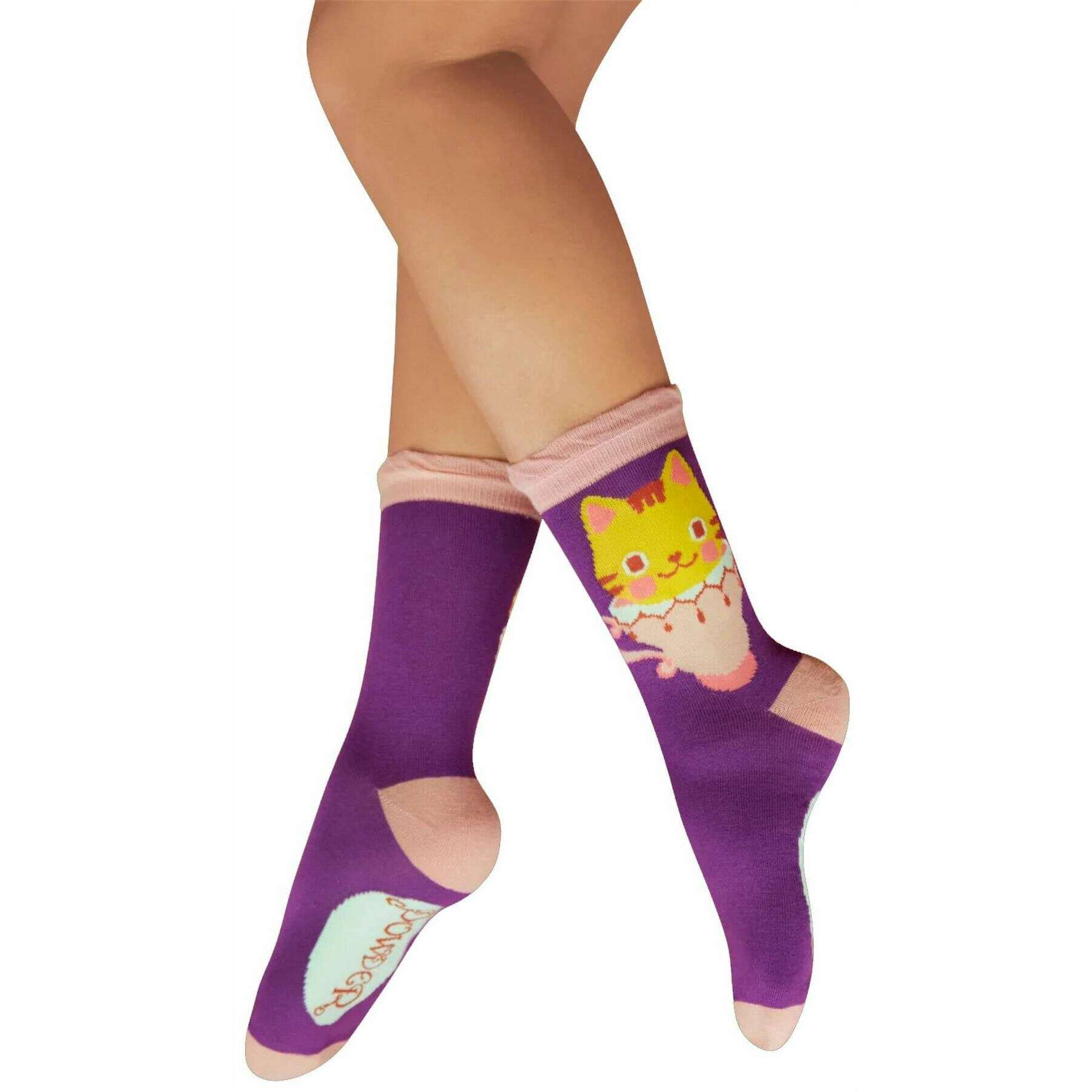 Powder Afternoon Tea Kitty Ankle Socks - Purple/Pink/Yellow
