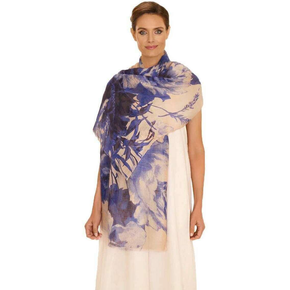 Powder China Bloom Cotton Linen Scarf - Blue