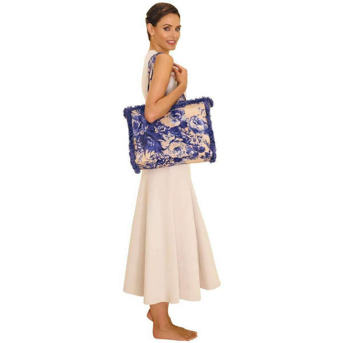 Perfect for women is this Powder blue china blooms fringed box tote, it is also made from 100% cotton. All the bags come complete with powder tags. The Powder China Blooms Fringed Box Tote - Blue is a practical and diverse bag that can be used for everyday outings, trips to the beach or a picnic in the park. The stunning fringe detail adds timeless flair, and the twin carry handles make it a comfortable carry, whether that be over the shoulder or at your side. This piece offers easy storage with its open compartment in which you can just chuck things in and pull them right out.