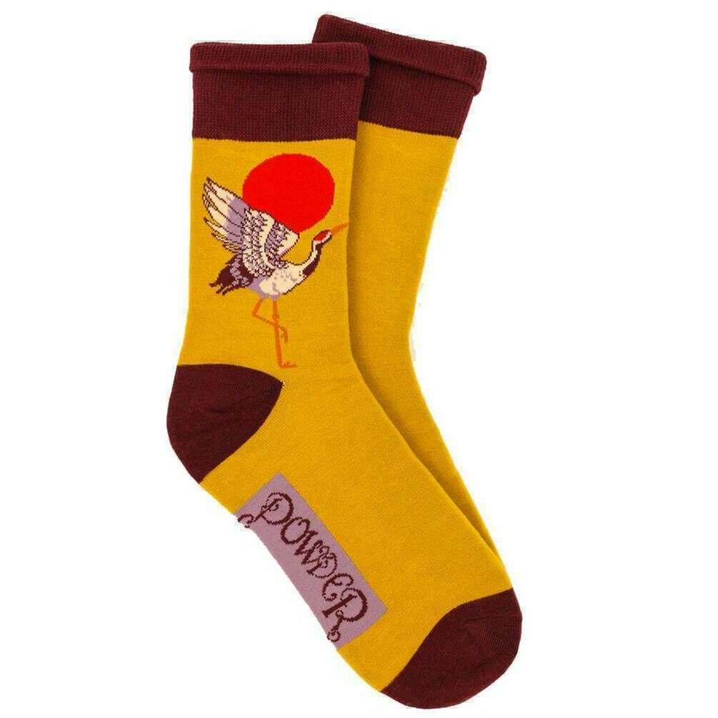 Perfect for men are these Powder mustard yellow crane at sunrise socks, they are also made from 65% bamboo, 15% cotton, 10% nylon and 10% elastane. Also the mustard yellow socks are designed in a unique pattern, It is recommended to machine wash at or below 30 degrees to keep these socks in good condition. All the socks come complete with powder tags. The Powder Crane at Sunrise Socks - Mustard Yellow will have an amazing way of showing positive and showing off the beautiful dawn. These socks provide the best comfort for everyone.