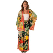 Powder Exotic Leaves Kimono Jacket - Green/Beige/Yellow