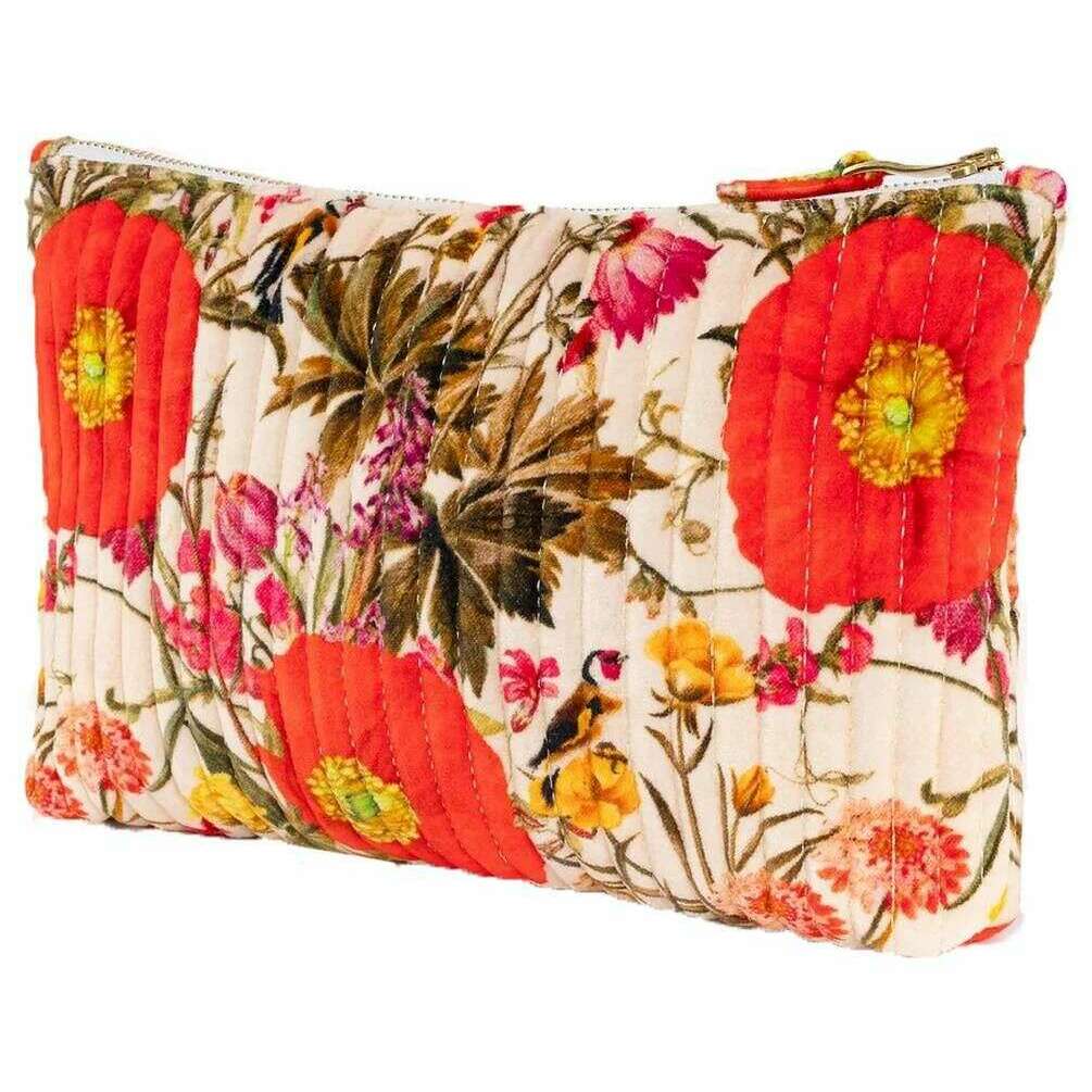 Powder Fine Flowers Quilted Velvet Zip Pouch - White/Red/Beige