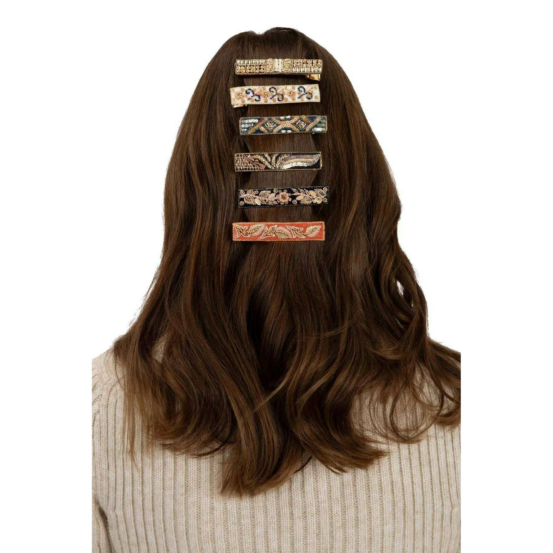 This women's glamour hair bars by the brand Powder is made from 100% metal and 100% polyester and is showcased in navy . It measures 10cm(height) x 6cm(width). 2 pack hair accessories is value for money ensuring they are a good buy, All the hair accessories comes complete with powder tags. The Powder Glamour Hair Bars - Midnight/Champagne will elevate your hair game on any occasion, adding stylish flair that will get people gawking. Beautifully embellished with intricate sequins and embroidery this set of 2 hair bars are a must have for your collection.