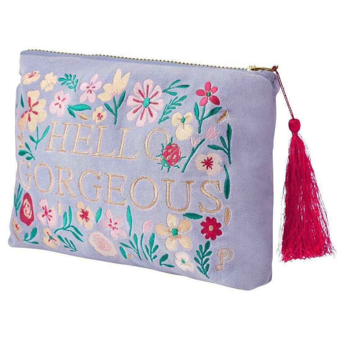Manufactured from 100% polyester velvet is this denim blue women's hello gorgeous velvet zip pouch by the designer Powder. All the bags come complete with powder tags. The Powder Hello Gorgeous Velvet Zip Pouch - Denim Blue can be used for a variety of purposes such as, for storing make up, skin care or toiletries. It features a zipped top closure decorated with a beautiful tassel attached to the zip, giving it a timeless look. To finish and of course the showstopper is the elegant and stunning embroidered design on the front which can be admired continuously. This zipped pouch would make the perfect gift.