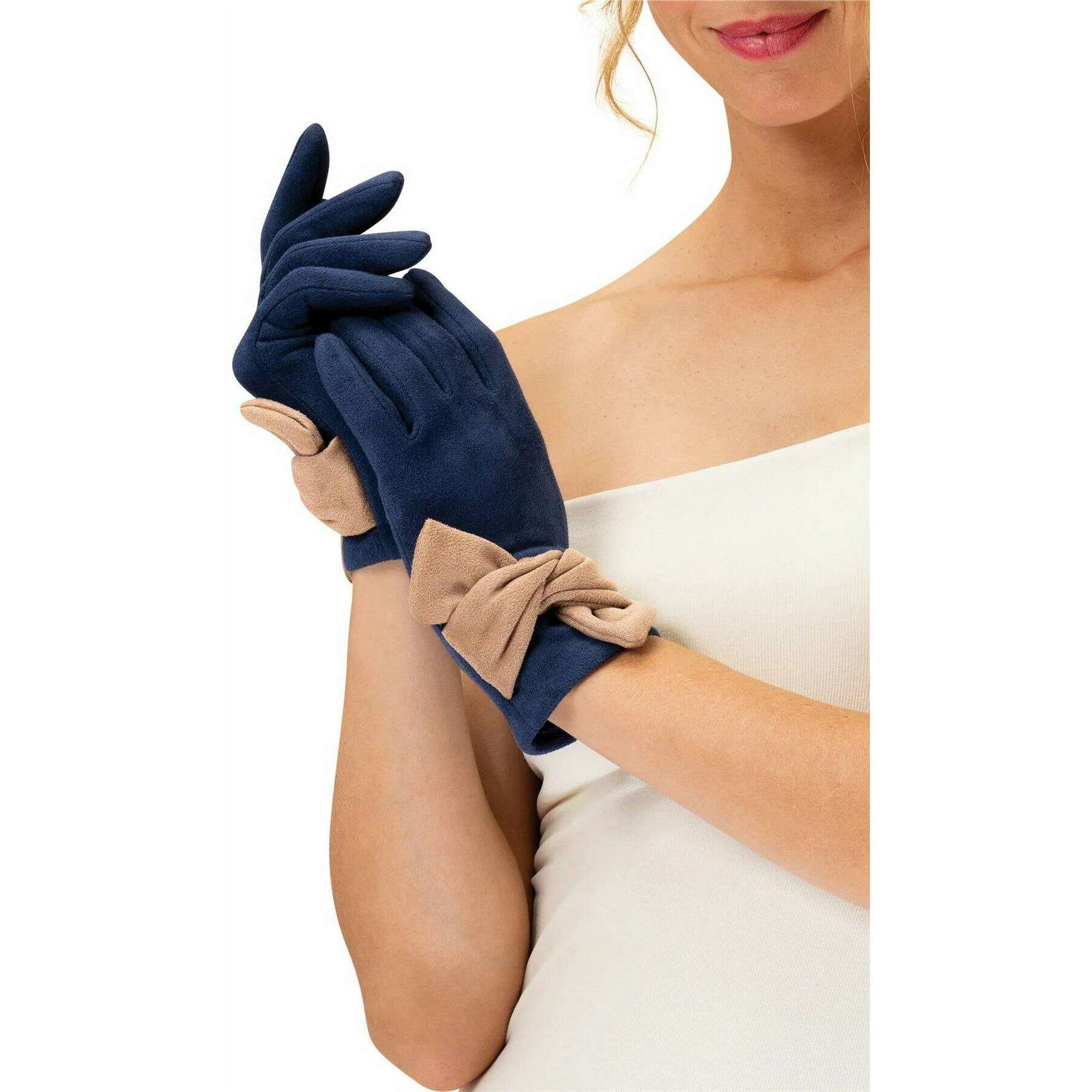 These henrietta gloves for women are fashioned by the brand Powder in a navy colour and are made from 90% polyester and 10% spandex. It measures 13.5cm(height) x 9cm(width). Also the navy/taupe beige gloves are designed in a plain pattern, It is recommended to hand wash only to keep these gloves in good condition. All the gloves come complete with powder tags. The Powder Henrietta Gloves - Navy/Taupe Beige are the perfect pair of glamorous gloves to finish off your winter attire. The bow detailing and contrasting colours gives a contemporary look that adds a luxurious and glamorous touch. The faux suede material ensures durability whilst being vegan, what more could you want.