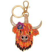 Powder Highland Cow Beaded Keyring - Cream/Orange/Black