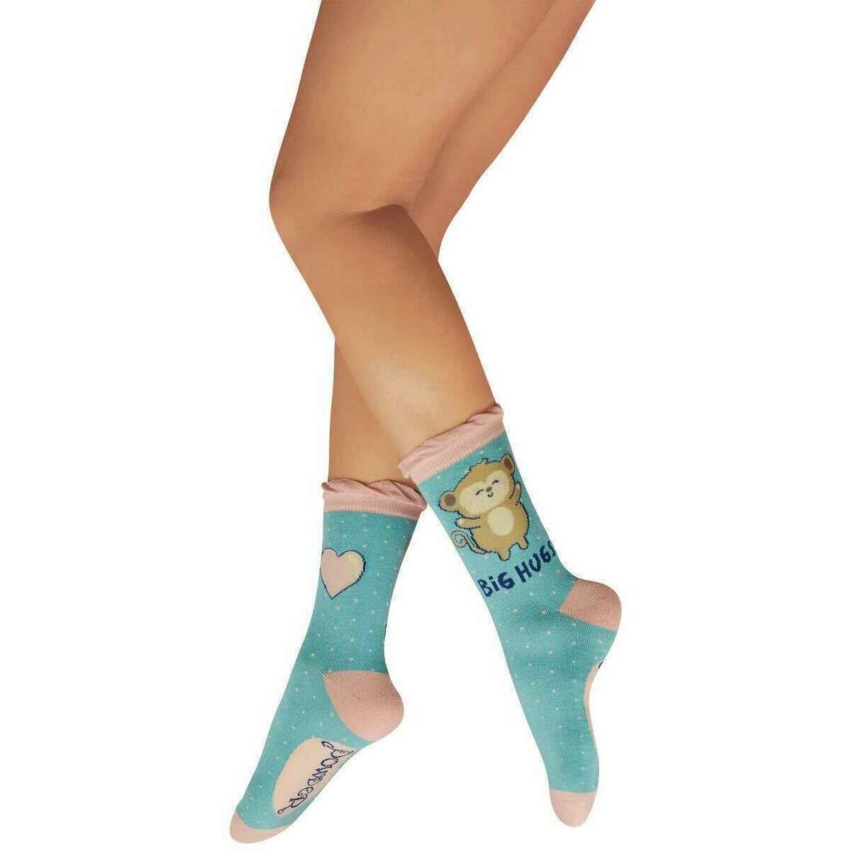 Powder Huggy Monkey Ankle Socks - Aqua Blue