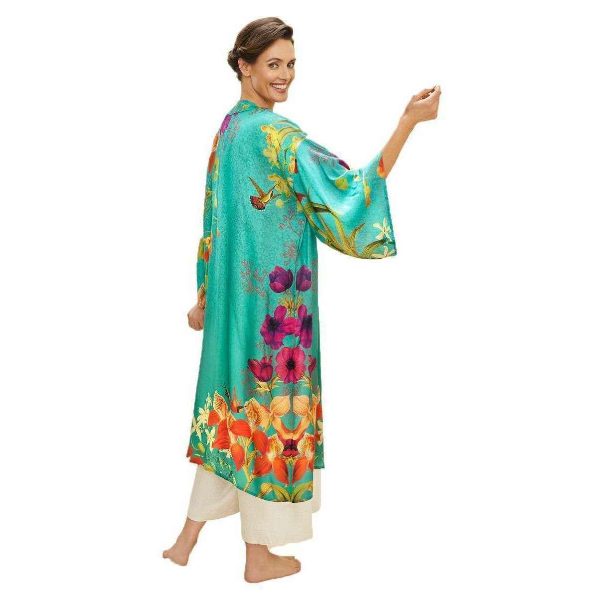 Powder Hummingbird at Dusk Kimono Gown - Teal