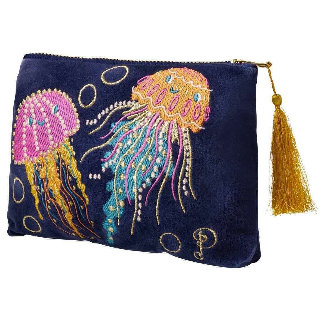 This well made women's jolly jellies velvet zip pouch from Powder comes in a navy colour and is manufactured from 100% polyester velvet. All the bags come complete with powder tags. The Powder Jolly Jellies Velvet Zip Pouch - Navy can be used for a variety of purposes such as, for storing make up, skin care or toiletries. It features a zipped top closure decorated with a beautiful tassel attached to the zip, giving it a timeless look. To finish and of course the showstopper is the elegant and stunning embroidered design on the front which can be admired continuously. This zipped pouch would make the perfect gift.