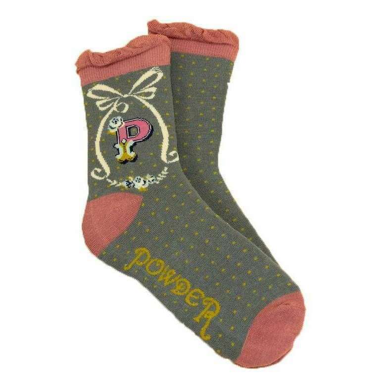 These women's letter p ankle socks by the brand Powder are made from 65% bamboo, 15% cotton, 10% nylon and 10% elastane and are showcased in grey. Also the charcoal grey socks are designed in a spots pattern, It is recommended to machine wash at 30 degrees to keep these socks in good condition. All the socks come complete with powder tags. The Powder Letter P Ankle Socks - Charcoal Grey are the perfect socks for a personalised gift! Made using bamboo these socks will keep your feet stylish and warm. Available with every letter of the alphabet these socks have a fun, playful design that you are sure to love!