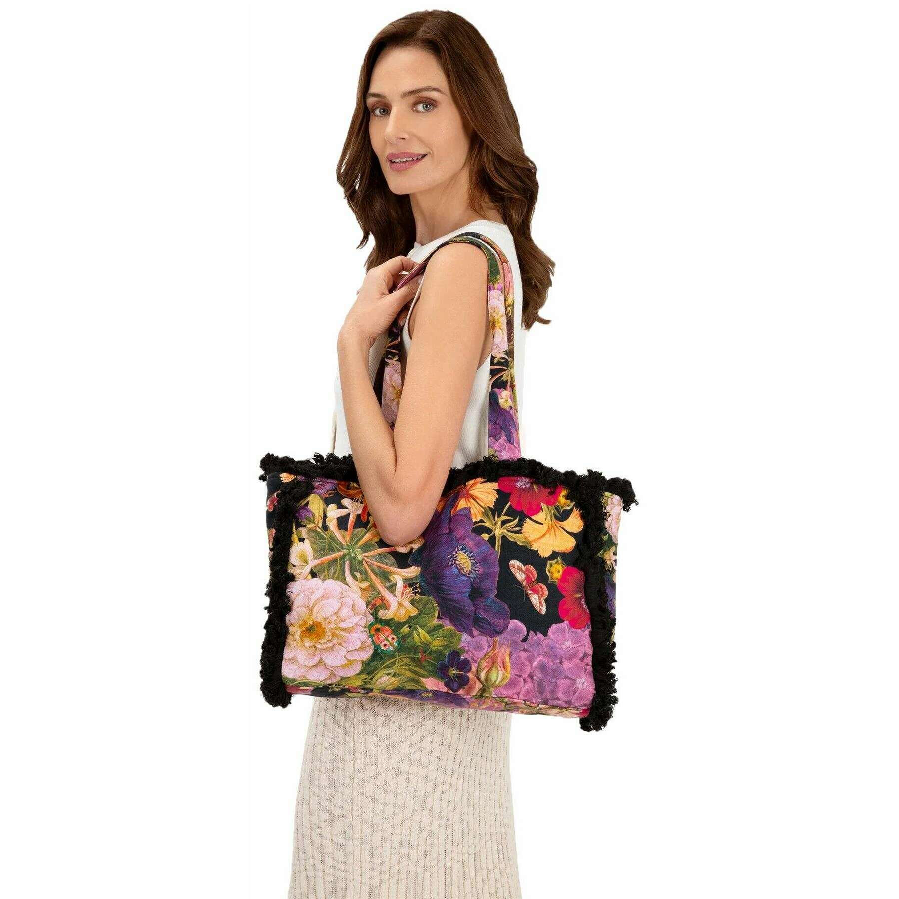 Powder Posy Fringed Tote Bag - Navy