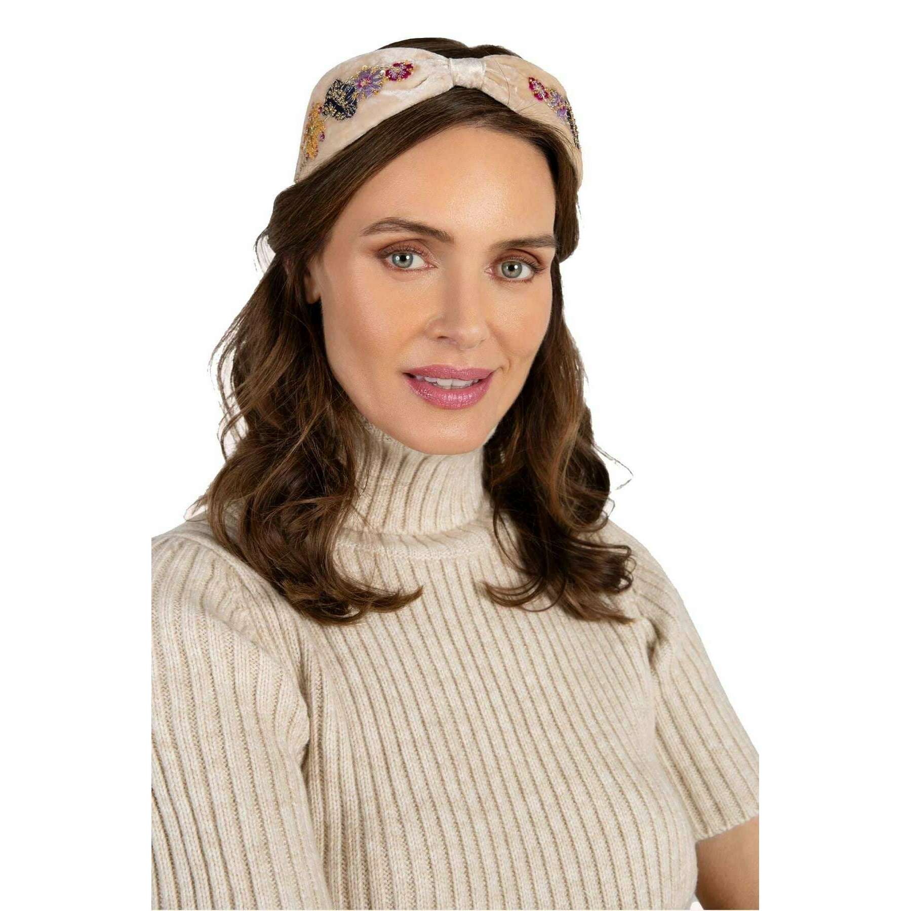 Powder Posy Velvet Headband - Cream