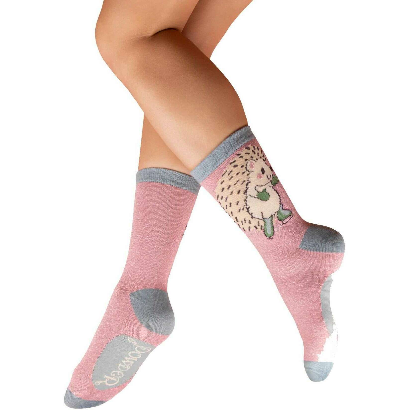 Powder Skating Hedgehog Glitter Ankle Socks - Pink