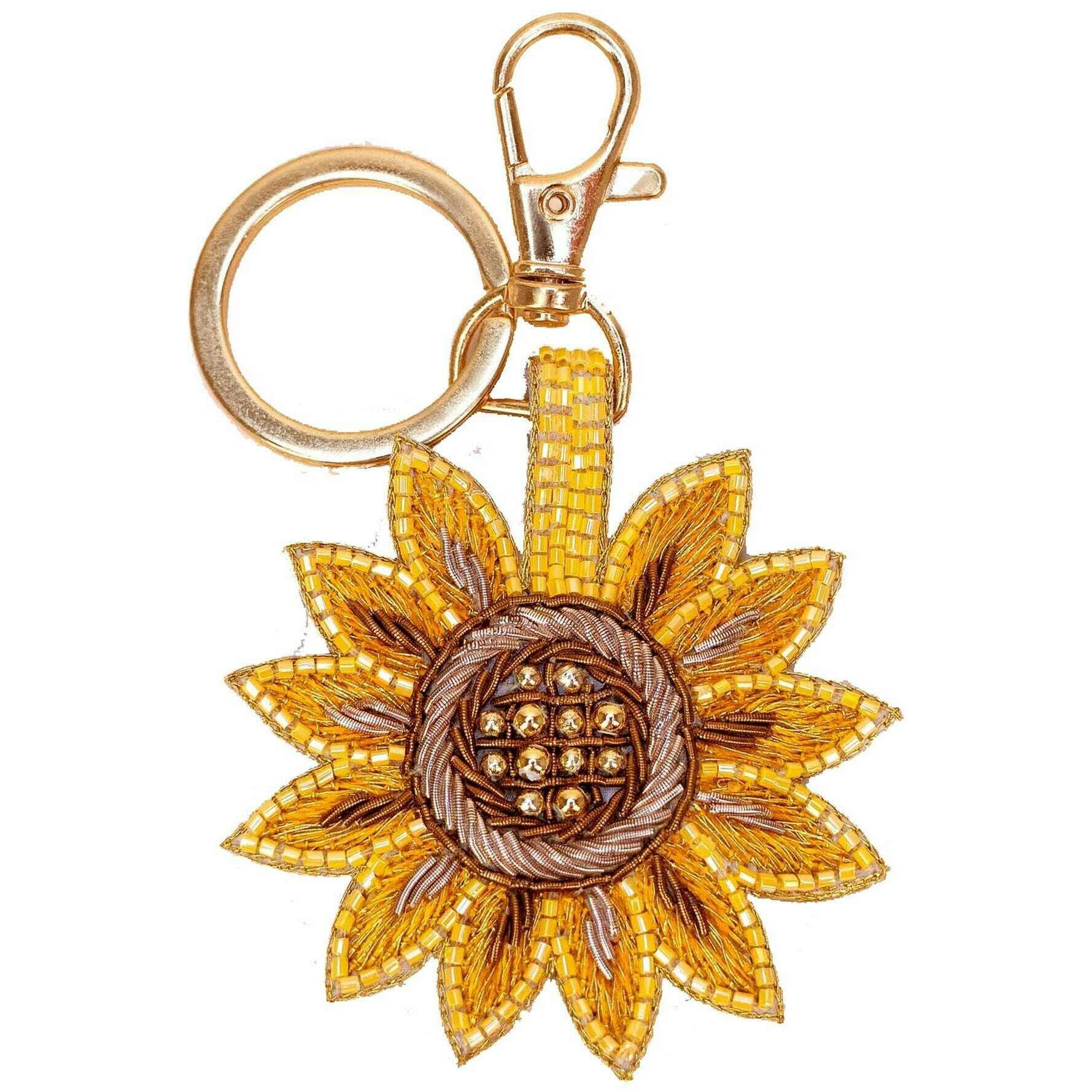 Powder Summer Sunflower Beaded Keyring - Yellow/Brown