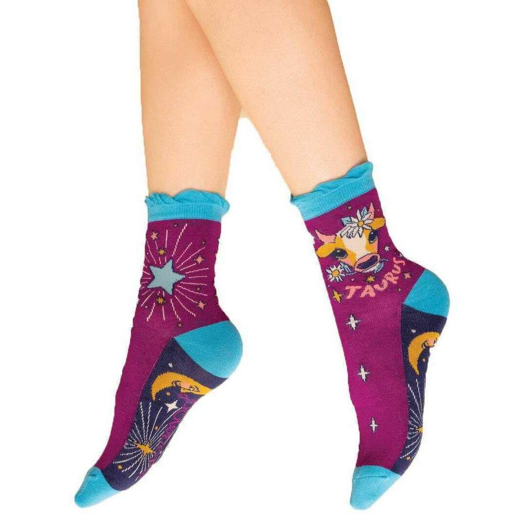 These women's taurus ankle socks have been made from 65% bamboo, 15% cotton, 10% nylon and 10% elastane, featured in a purple colour and are from the brand Powder. Also the purple socks are designed in a unique pattern, It is recommended to machine wash at 30 degrees to keep these socks in good condition. All the socks come complete with powder tags. The Powder Taurus Ankle Socks - Purple will be sure to brighten up for your look thanks to the cute cosmic design and standout colours. Perfect for a gift these socks are made using bamboo to ensure maximum comfort and durability.