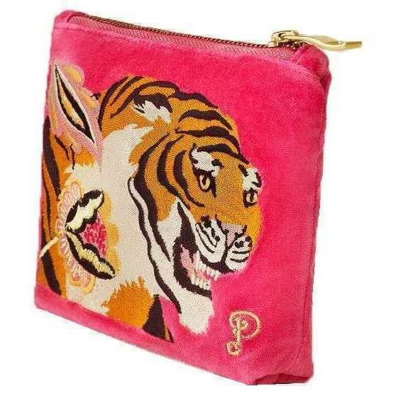 This thrill of the tiger velvet mini pouch for women is fashioned by the brand Powder in a pink colour and is made from 100% polyester velvet. It measures 18cm(height) x 14cm(width). All the purses come complete with powder tags. The Powder Thrill of the Tiger Velvet Mini Pouch - Fuchsia Pink hand-embroidered, makes the perfect mini pouch to carry around with you on your everyday travels, whether that is to hold your coins, notes and cards or just to hold your smaller valuable essentials. This tiger design will add a cool and fierce feel. This pouch makes for a perfect gift for your loved ones.
