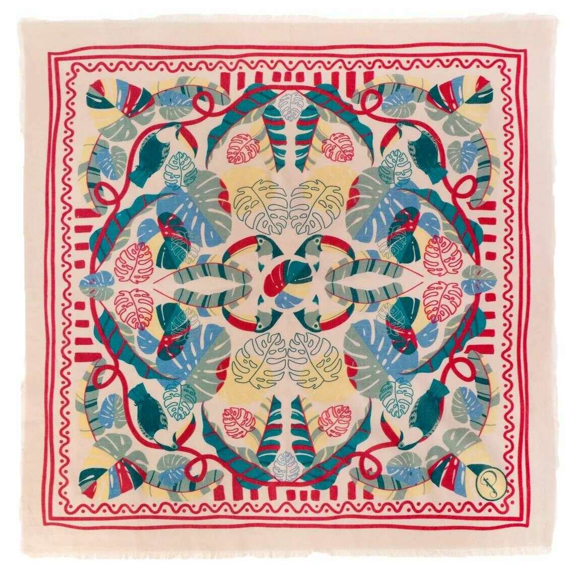 Powder Tropical Toucan Bandana - Beige/Red/Blue