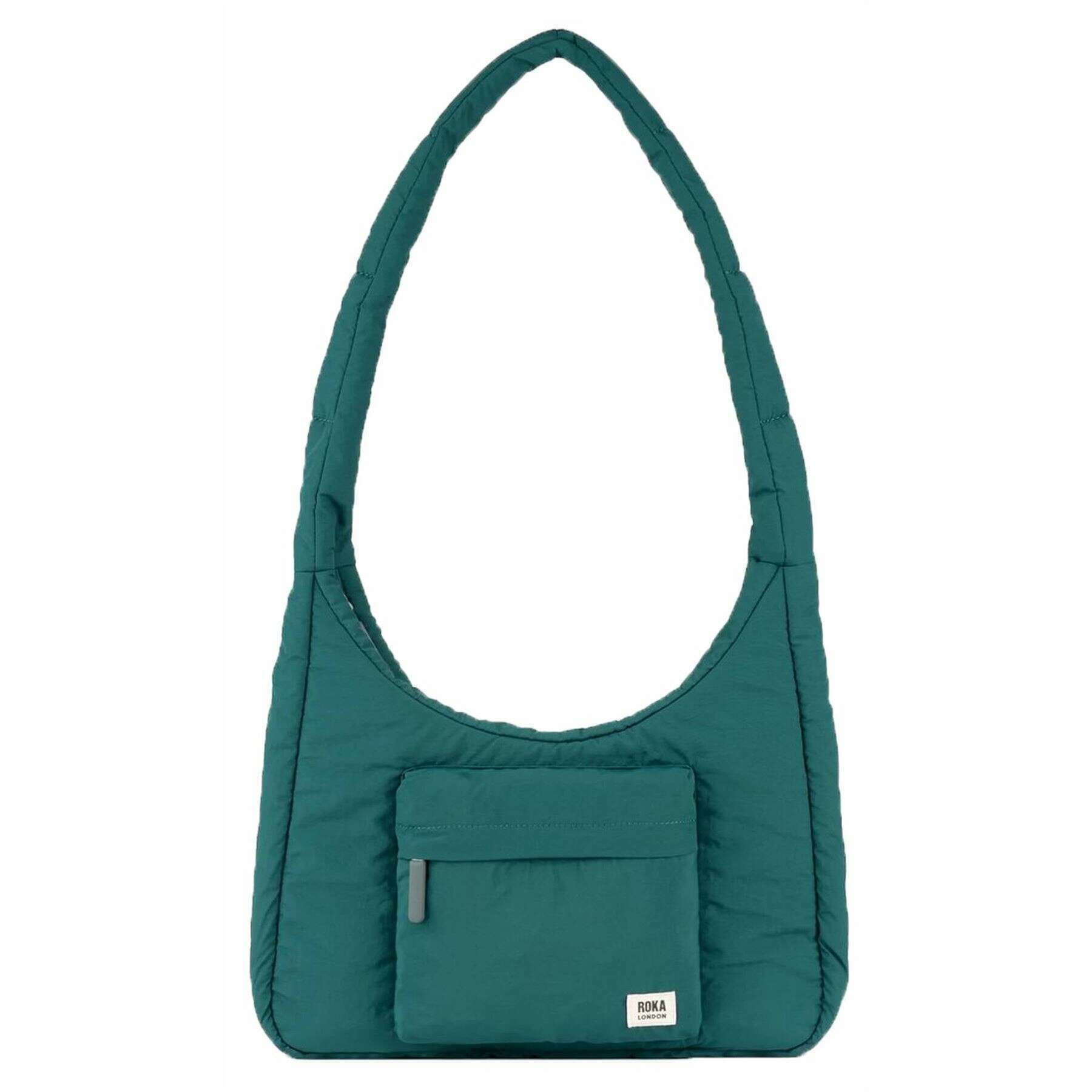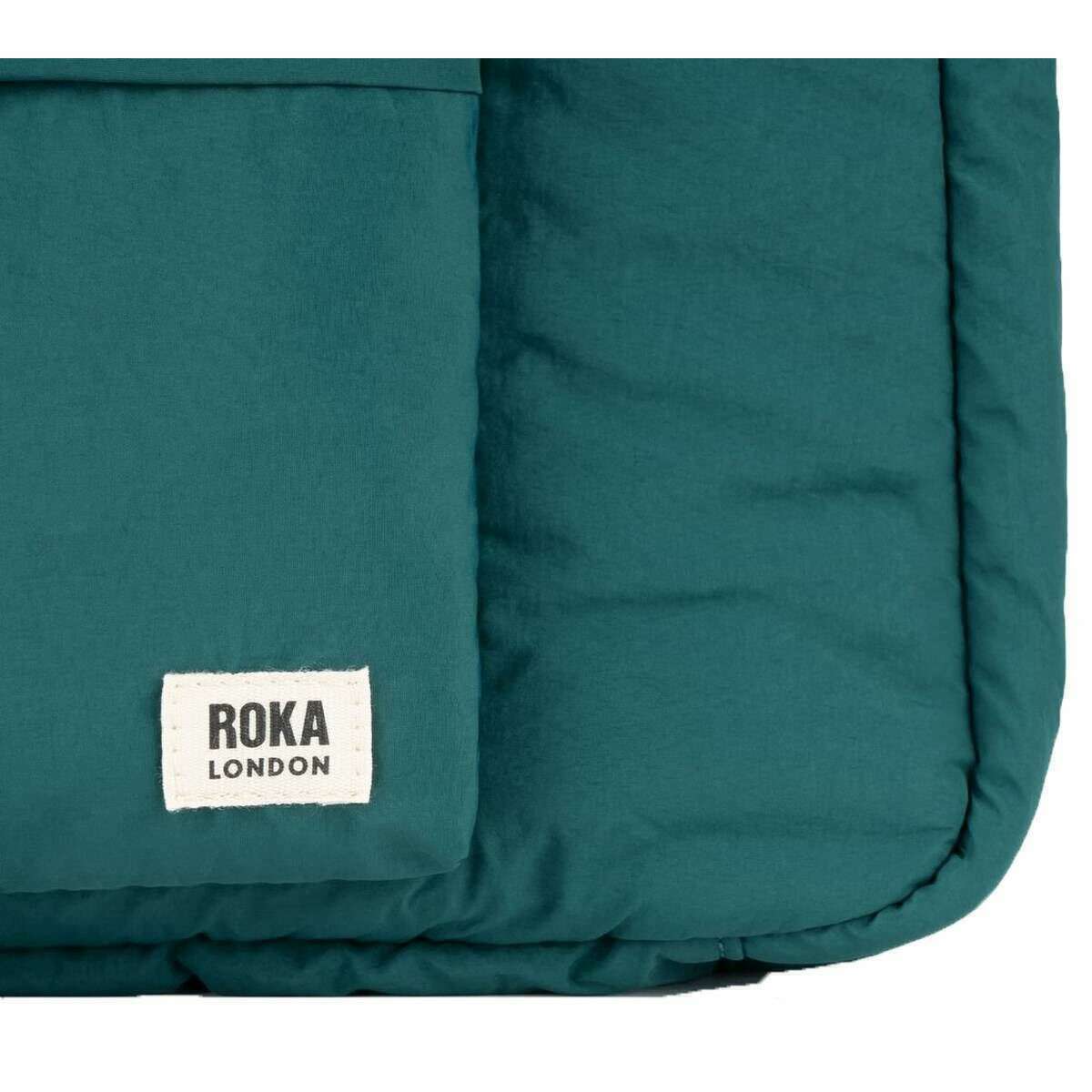Designer Roka has brought you this unisex 100% recycled nylon bag using teal blue tones. It measures 37cm(height) x 12cm(width) x 33cm(depth). All the bags come complete with roka packaging. The Roka Belsize Recycled Taslon Medium Crossbody Bag - Teal Blue is a stylish and versatile puff taslon bag that combines functionality with a delightful design. With a strap that allows you to wear crossbody or over the shoulder, this bag features a spacious interior, nylon zipped pocket, water bottle holder and extra compartments for all your essentials. There is an external puffed B-pocket for quick access to your most used items whilst on the move. Perfect for work, travel or weekend adventure, this bag delivers a lightweight, comfortable carry while giving off contemporary, eye-catching vibes.