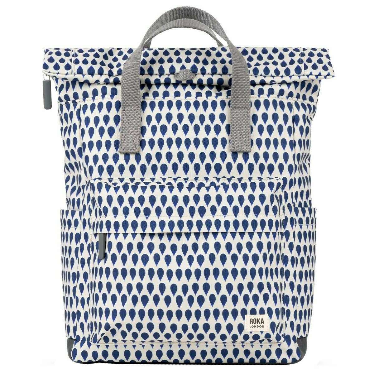 This unisex canfield b medium denim rain recycled canvas backpack has been made from 100% weather-resistant recycled canvas, featured in a blue colour and is from the brand Roka. It measures 42cm(height) x 30cm(width) x 12cm(depth). All the bags come complete with roka packaging. The Roka Canfield B Medium Denim Rain Recycled Canvas Backpack - Blue/White is weather-resistant, durable, lightweight and sleek that features a unique and captivating rain drop design which is not only timeless that will continue to be loved in years to come but also perfect for standing out in the crowd. Excellently crafted from recycled canvas material making it environmentally friendly and sustainable. The roll top design enables the backpack to have a wide mouth opening which is secured with a sturdy zip and magnetic hold, carrying your essentials couldn’t be safer. This bag come equipped with a padded 15” laptop compartment and two side pockets perfect for water bottles. Fitted with webbed straps you can carry it on your back or at your side using its sturdy handles.