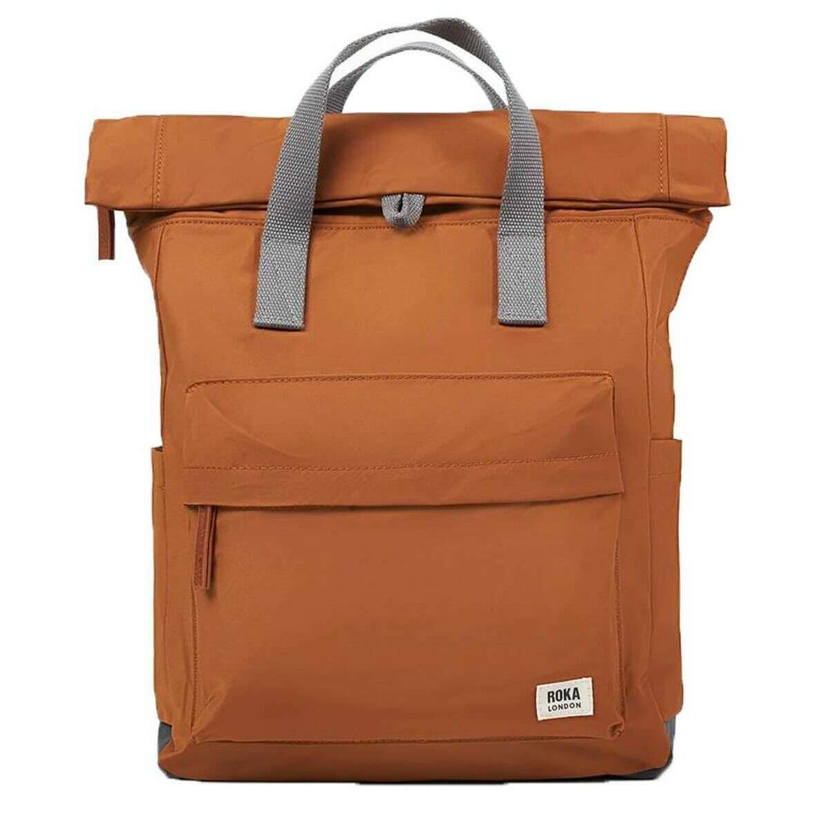 Introducing this unisex canfield b medium recycled nylon backpack by Roka, it is manufactured from 100% recycled nylon (triple-coated) in a bran brown colour. It measures 42cm(height) x 30cm(width) x 12cm(depth). All the bags come complete with roka packaging. The Roka Canfield B Medium Recycled Nylon Backpack - Bran Brown is weather-resistant, durable, lightweight and sleek which features a gorgeous pop of colour to add a bit of brightness into your days. Excellently crafted from recycled nylon material making it environmentally friendly and sustainable. The roll top design enables the backpack to have a wide mouth opening which is secured with a sturdy zip and magnetic hold, carrying your essentials couldn t be safer. This bag come equipped with a padded 15 laptop compartment and two side pockets perfect for water bottles. Fitted with webbed straps you can carry it on your back or at your side using its sturdy handles.