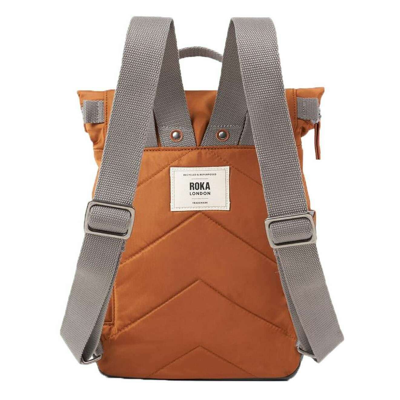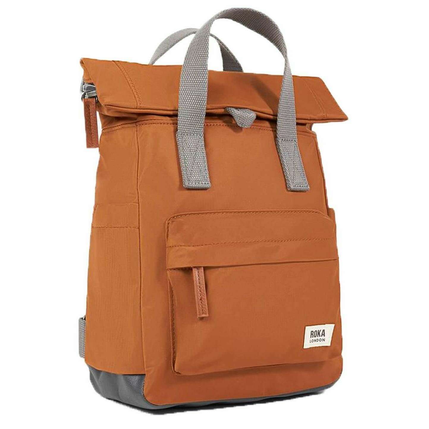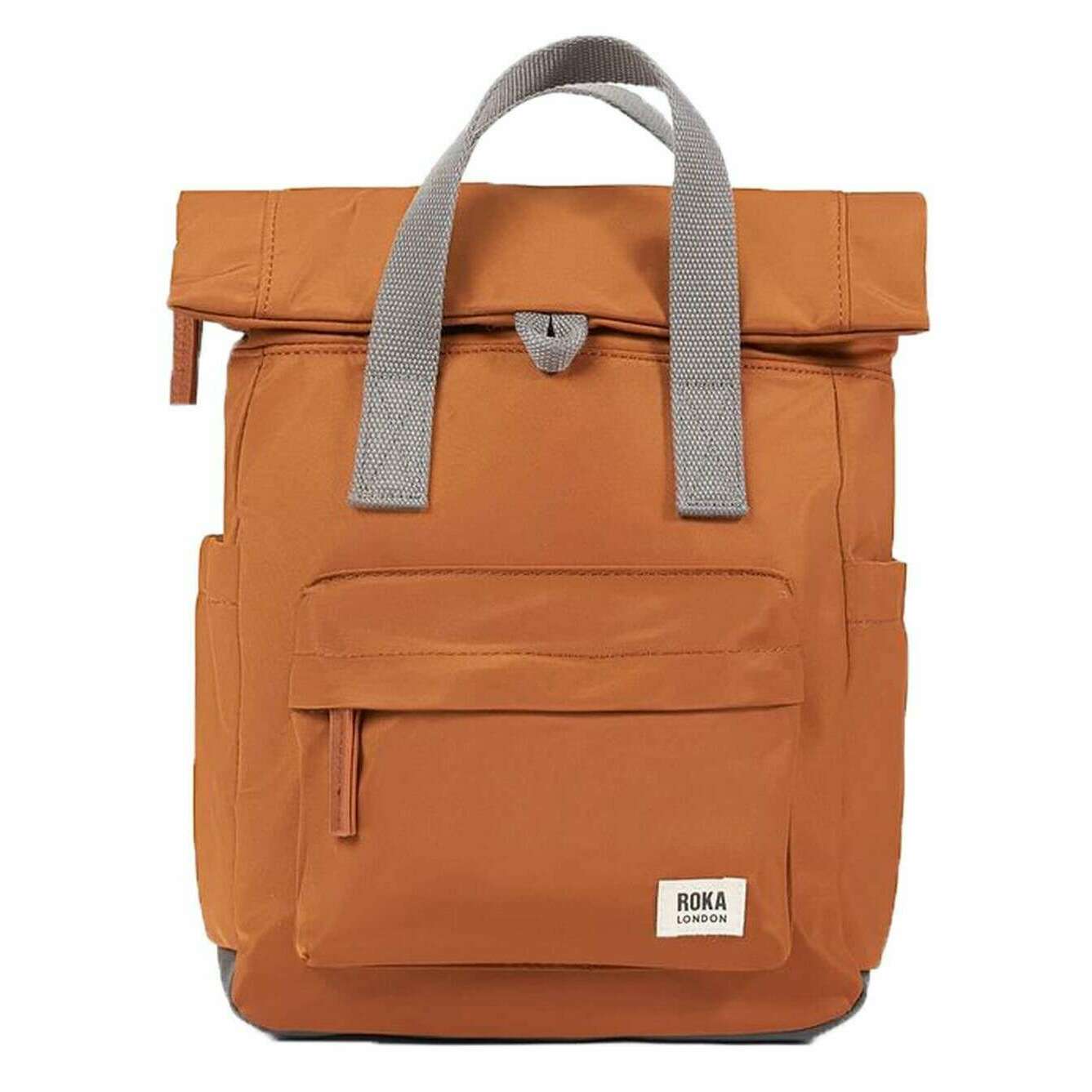 Perfect for men or women is this Roka bran brown canfield b small recycled nylon backpack, it is also made from 100% recycled nylon (triple-coated). It measures 33cm(height) x 23.5cm(width) x 9.6cm(depth). All the bags come complete with roka packaging. The Roka Canfield B Small Recycled Nylon Backpack - Bran Brown is weather-resistant, durable, lightweight and sleek. The roll top design enables the backpack to have a wide mouth opening which is secured with a sturdy zip and magnetic hold, carrying your essentials couldn t be safer. Featuring a secret wallet pocket and a tablet section, this backpack allows you to carry everything you may need on your day-to-day travels. Carry in complete comfort with the adjustable cotton webbing straps or the twin carry handles. Crafted from recycled nylon ensures this bag is vegan friendly and sustainable.