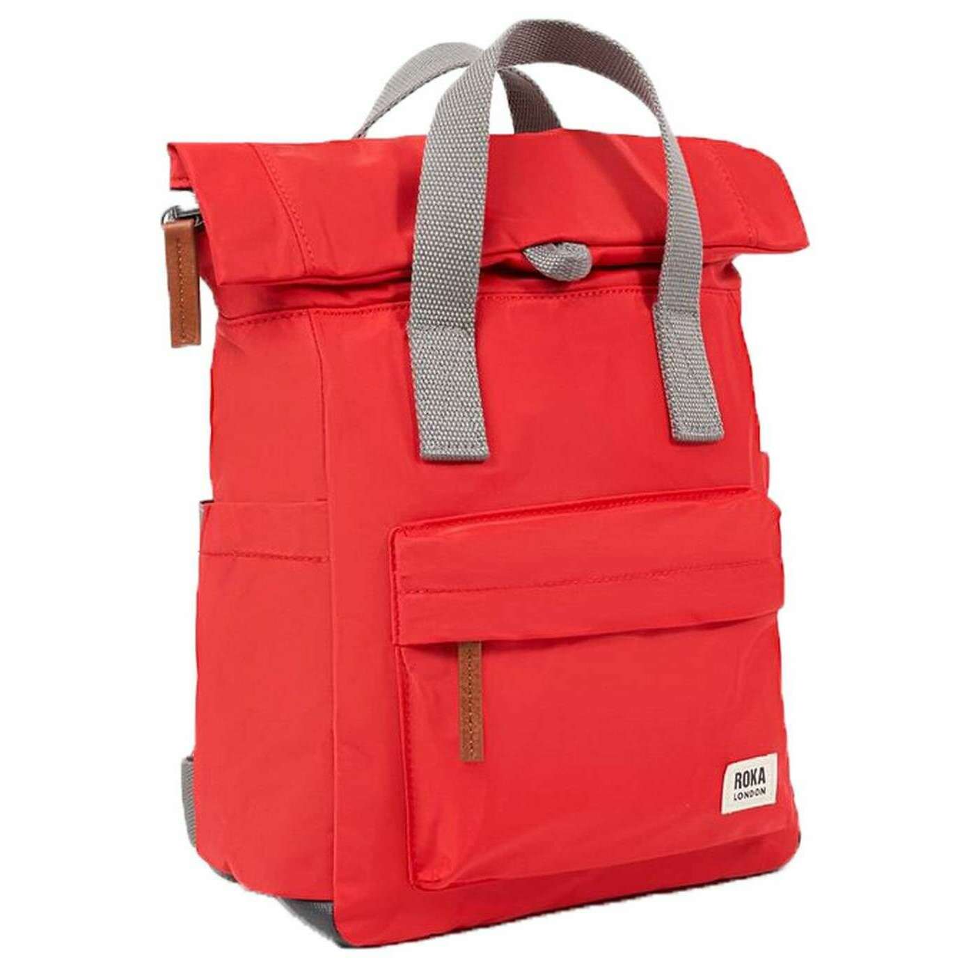 Manufactured from 100% recycled nylon (triple-coated) is this chilli oil red unisex canfield b small recycled nylon backpack by the designer Roka. It measures 33cm(height) x 23.5cm(width) x 9.6cm(depth). All the bags come complete with roka packaging. The Roka Canfield B Small Recycled Nylon Backpack - Chilli Oil Red is weather-resistant, durable, lightweight and sleek. The roll top design enables the backpack to have a wide mouth opening which is secured with a sturdy zip and magnetic hold, carrying your essentials couldn t be safer. Featuring a secret wallet pocket and a tablet section, this backpack allows you to carry everything you may need on your day-to-day travels. Carry in complete comfort with the adjustable cotton webbing straps or the twin carry handles. Crafted from recycled nylon ensures this bag is vegan friendly and sustainable.