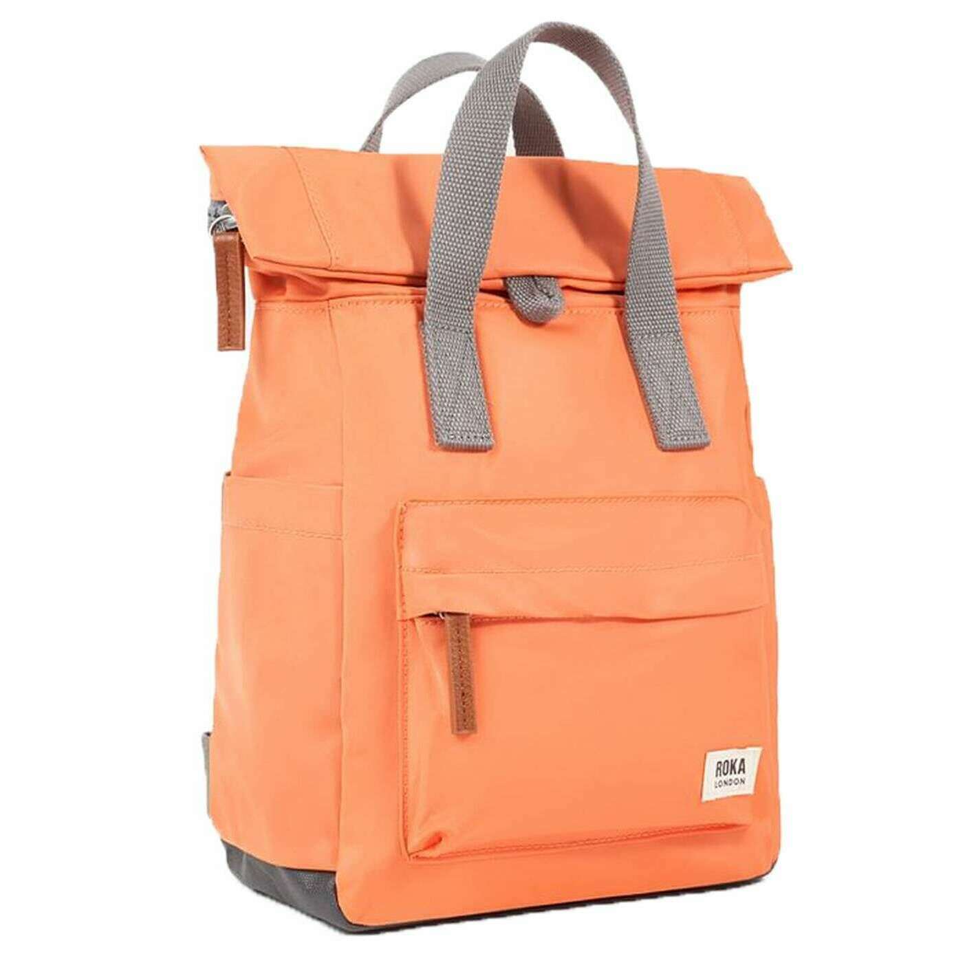 Designer Roka has brought you this unisex 100% recycled nylon (triple-coated) bag using firecracker orange tones. It measures 33cm(height) x 23.5cm(width) x 9.6cm(depth). All the bags come complete with roka packaging. The Roka Canfield B Small Recycled Nylon Backpack - Firecracker Orange is weather-resistant, durable, lightweight and sleek. The roll top design enables the backpack to have a wide mouth opening which is secured with a sturdy zip and magnetic hold, carrying your essentials couldn t be safer. Featuring a secret wallet pocket and a tablet section, this backpack allows you to carry everything you may need on your day-to-day travels. Carry in complete comfort with the adjustable cotton webbing straps or the twin carry handles. Crafted from recycled nylon ensures this bag is vegan friendly and sustainable.