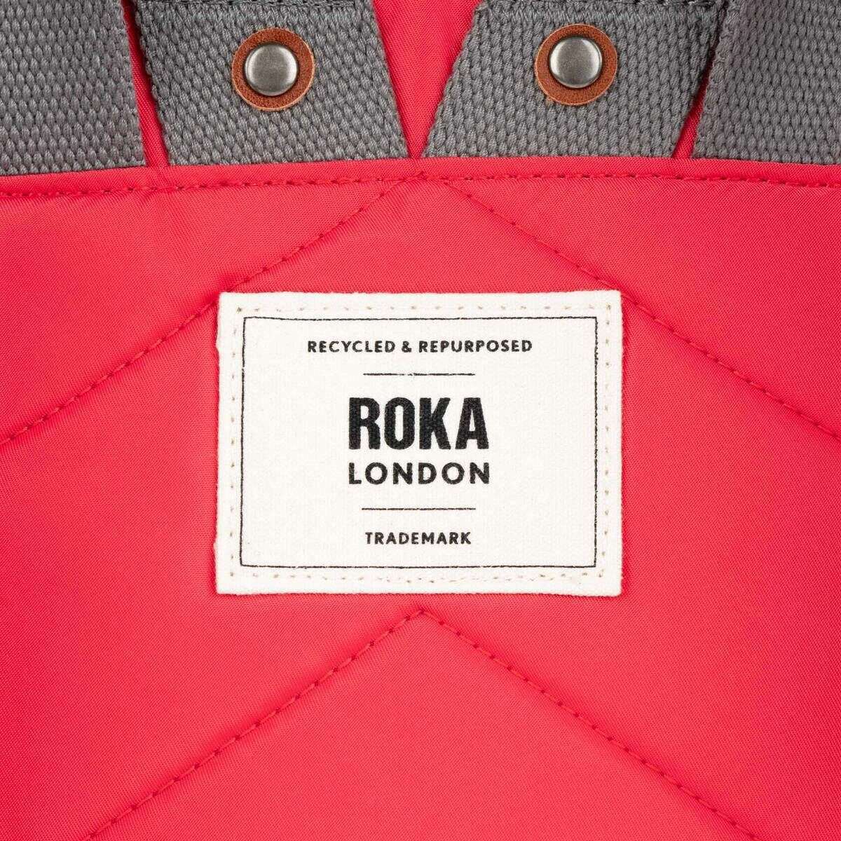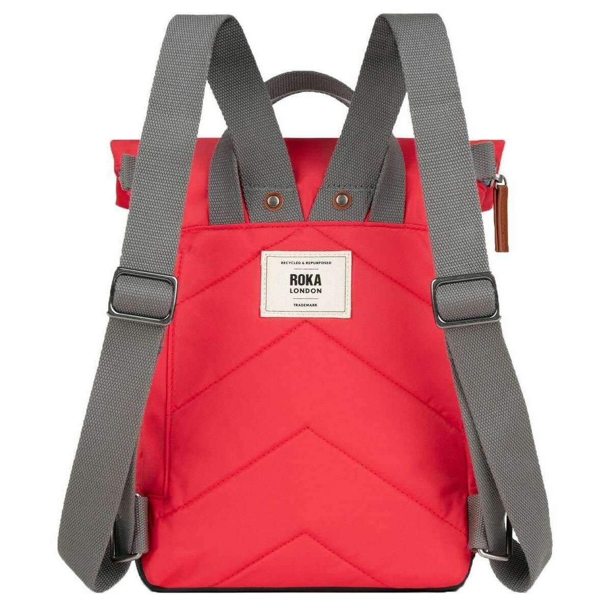 This well made unisex canfield b small recycled nylon backpack from Roka comes in a poppy red colour and is manufactured from 100% weather-resistant recycled nylon. It measures 33cm(height) x 23.5cm(width) x 9.6cm(depth). All the bags come complete with roka packaging. The Roka Canfield B Small Recycled Nylon Backpack - Poppy Red is weather-resistant, durable, lightweight and sleek. The roll top design enables the backpack to have a wide mouth opening which is secured with a sturdy zip and magnetic hold, carrying your essentials couldn’t be safer. Featuring a secret wallet pocket and a tablet section, this backpack allows you to carry everything you may need on your day-to-day travels. Carry in complete comfort with the adjustable cotton webbing straps or the twin carry handles. 12 or more plastic bottles are used to make the rPET material for this bag so it is environmentally friendly and also completely vegan.