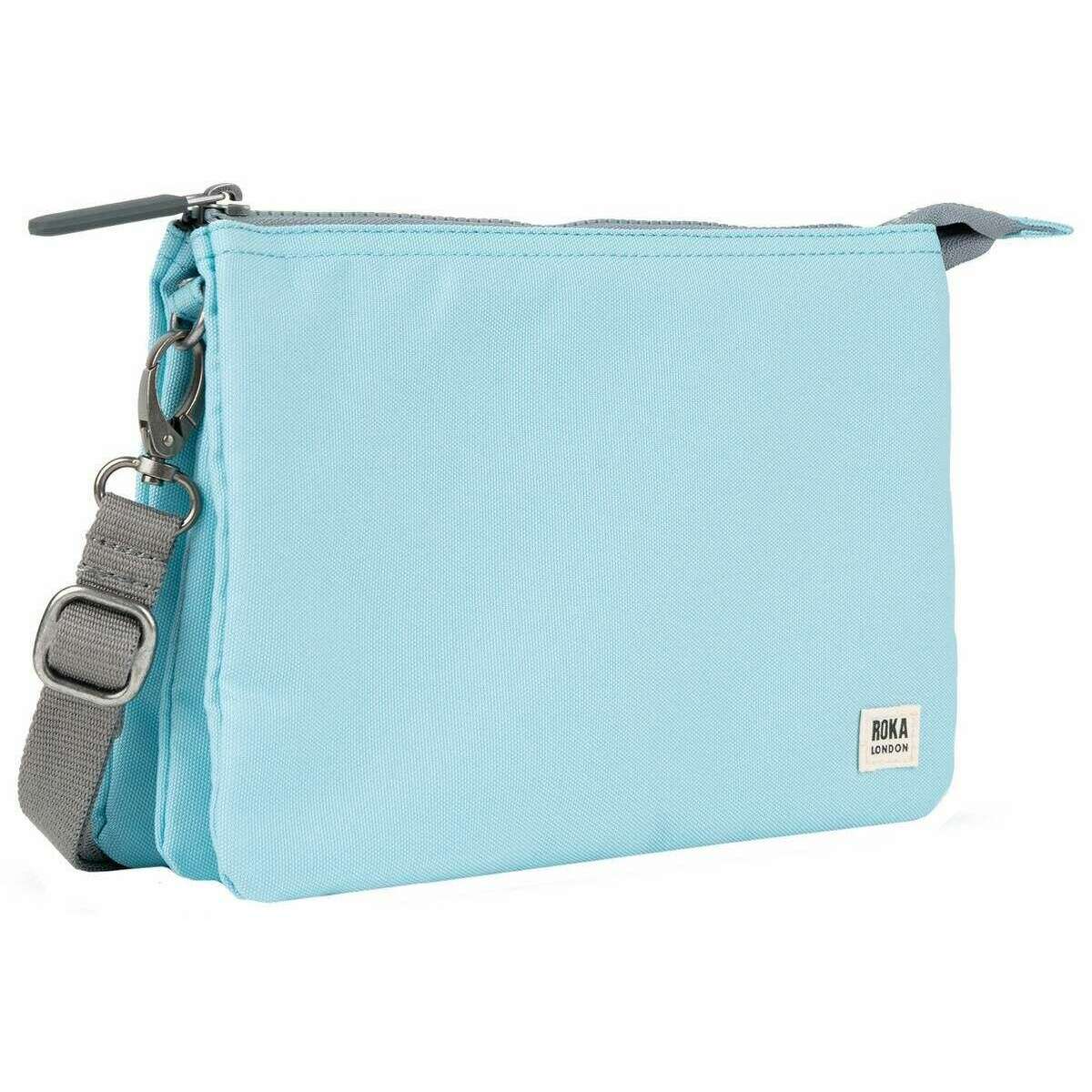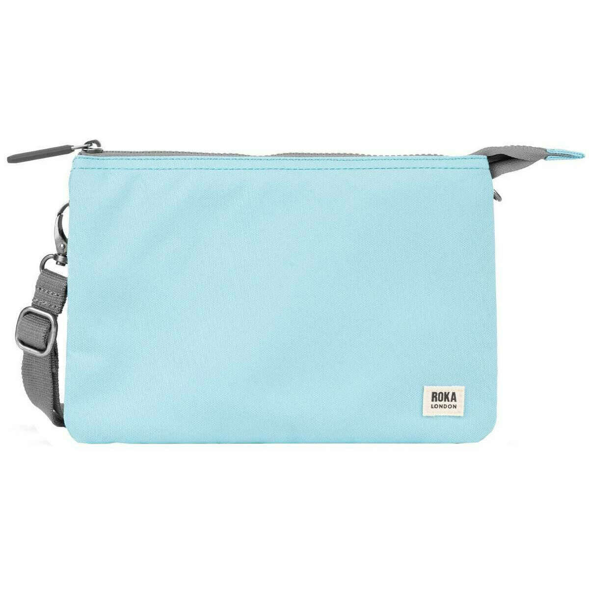 This unisex carnaby xl recycled canvas crossbody bag has been made from 100% weather resistant recycled canvas, featured in a blue colour and is from the brand Roka. It measures 17cm(height) x 25cm(width) x 3cm(depth). It is recommended to clean with a wet sponge or damp cloth to keep this bag in good condition. All the bags come complete with roka packaging. The Roka Carnaby XL Recycled Canvas Crossbody Bag - Ice Blue offers practicality and organisation when it comes to your day-to-day essentials with its weather resistant recycled canvas material. It has three separate compartments, each with various pockets and slots for cards, coins and notes as well as being big enough to store most mobile phones. It is the perfect accessory that allows you to carry your wallet as a bag with a little extra room for a few more bits and bobs. It is fitted with adjustable webbed strap and is designed to be durable and lightweight as well as sustainable. The Carnaby XL is an all-round winner.