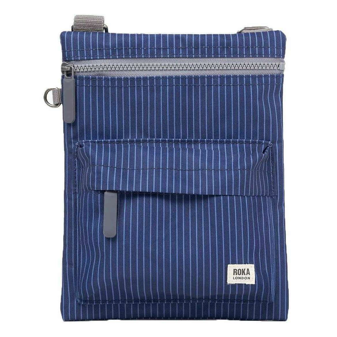This unisex chelsea b medium recycled canvas sling bag by the brand Roka is made from 100% recycled canvas (triple-coated) and is showcased in blue. It measures 22.5cm(height) x 20cm(width) x 2.5cm(depth). All the bags come complete with roka packaging. The Roka Chelsea B Medium Recycled Canvas Sling Bag - Dark Denim Pinstripe Blue is a larger version of the Chelsea with even more storage due to the front pocket and the larger main compartment. This bag was also crafted using sustainable recycled vegan materials which are guaranteed to last a long time. The compact but great storage bag will fit all of your essentials whilst being close by and easily accessible. Now having three pockets one in the front, back and in the main compartment.