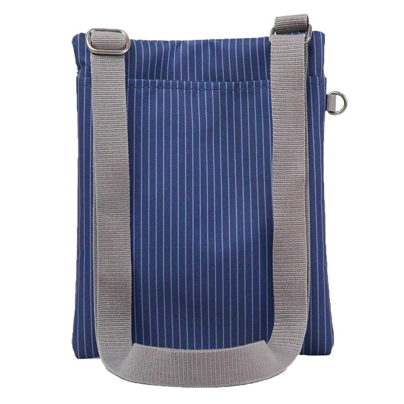 Roka Chelsea B Medium Recycled Canvas Sling Bag - Dark Denim Pinstripe Blue