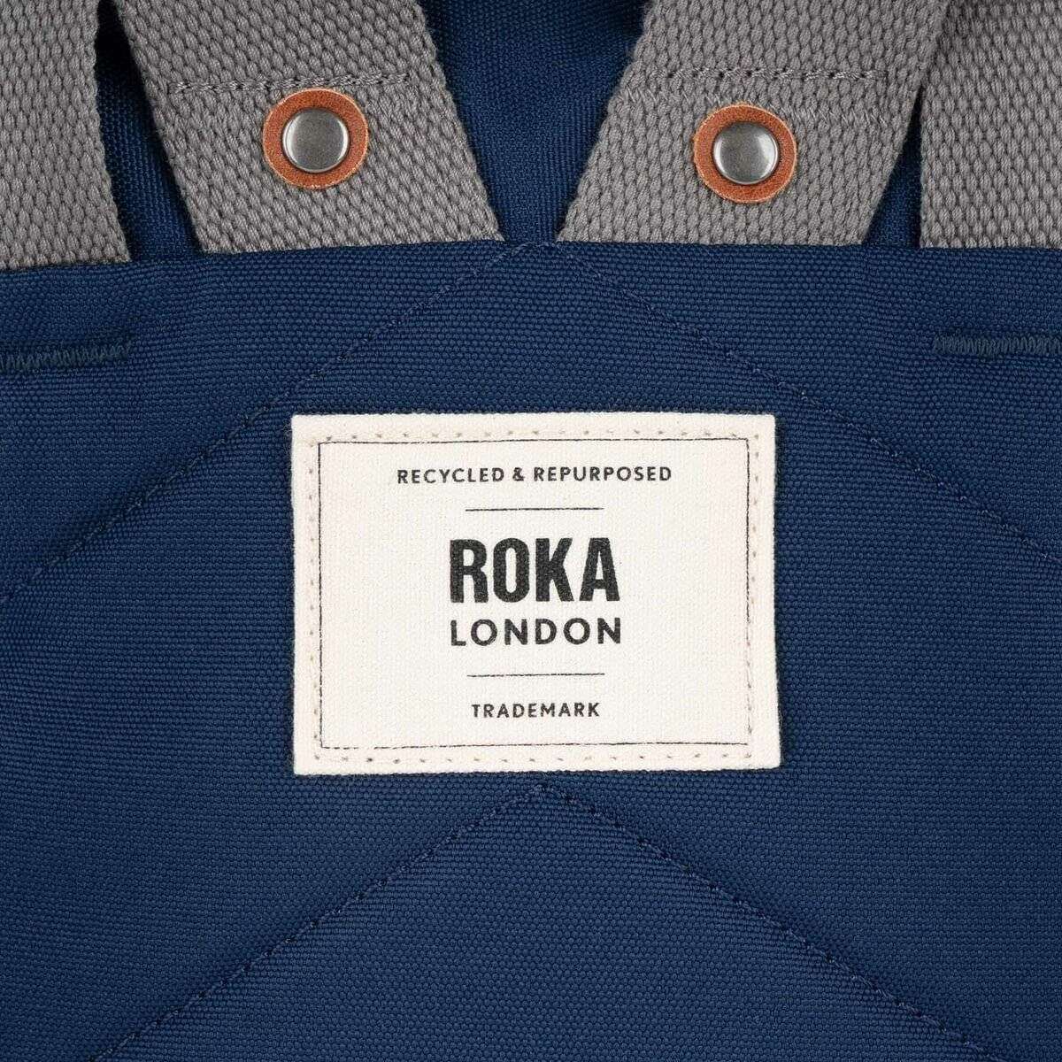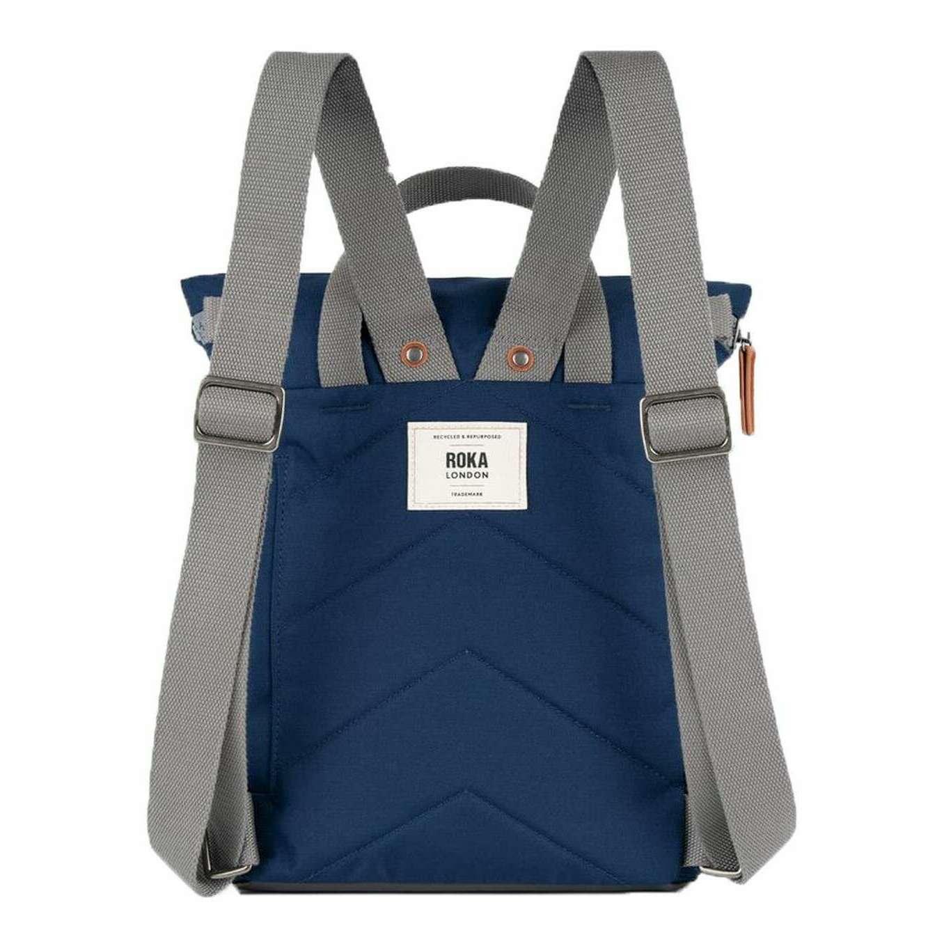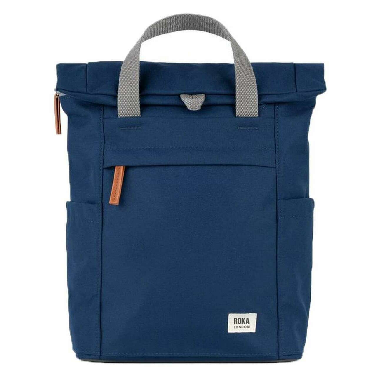 This unisex finchley a small recycled canvas backpack has been made from 100% recycled canvas (triple-coated), featured in a blue colour and is from the brand Roka. It measures 34cm(height) x 25cm(width) x 12cm(depth). All the bags come complete with roka packaging. The Roka Finchley A Small Recycled Canvas Backpack - Crisp Blue will keep your essentials organised throughout the day as it features a tablet sleeve, inside pockets and water bottle pockets. There truly is ample storage for all your necessities. The roll top design and large zipped front compartment will keep everything secure whilst on the move. The comfortable straps offer you extra comfort and stability, while the water-resistant durable design with fully padded back panel provides comfort on the go. Made from recycled material, this bag has matte look and feel which helps to evoke the canvas. This bag is completely vegan making it ideal for everyday use.