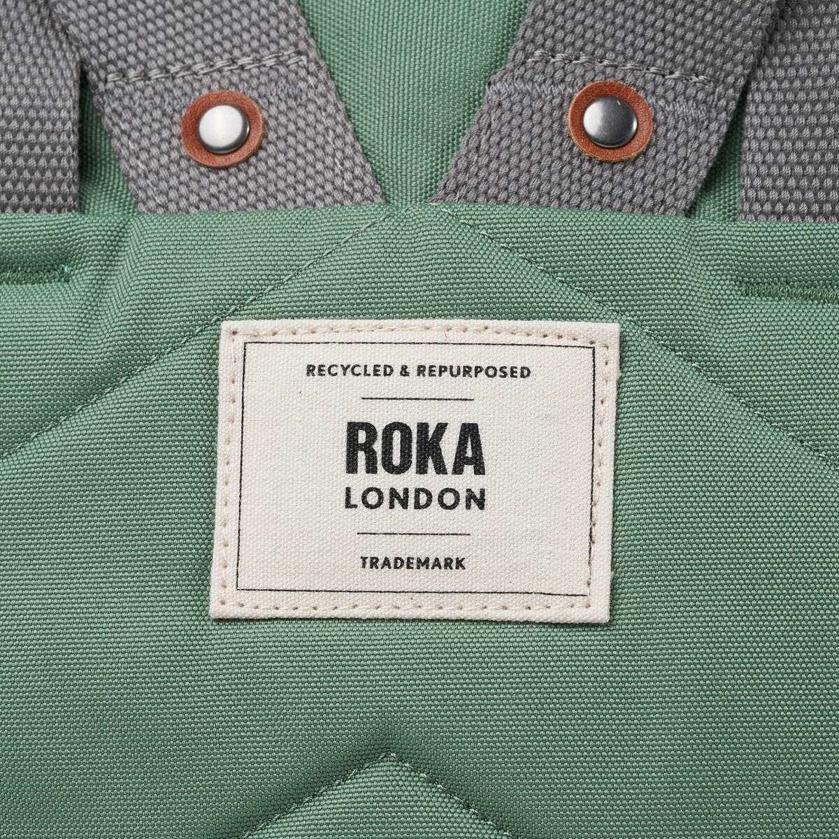 Introducing this unisex finchley a small recycled canvas backpack by Roka, it is manufactured from 100% recycled canvas (triple-coated) in a frost green colour. It measures 34cm(height) x 25cm(width) x 12cm(depth). All the bags come complete with roka packaging. The Roka Finchley A Small Recycled Canvas Backpack - Frost Green will keep your essentials organised throughout the day as it features a tablet sleeve, inside pockets and water bottle pockets. There truly is ample storage for all your necessities. The roll top design and large zipped front compartment will keep everything secure whilst on the move. The comfortable straps offer you extra comfort and stability, while the water-resistant durable design with fully padded back panel provides comfort on the go. Made from recycled material, this bag has matte look and feel which helps to evoke the canvas. This bag is completely vegan making it ideal for everyday use.