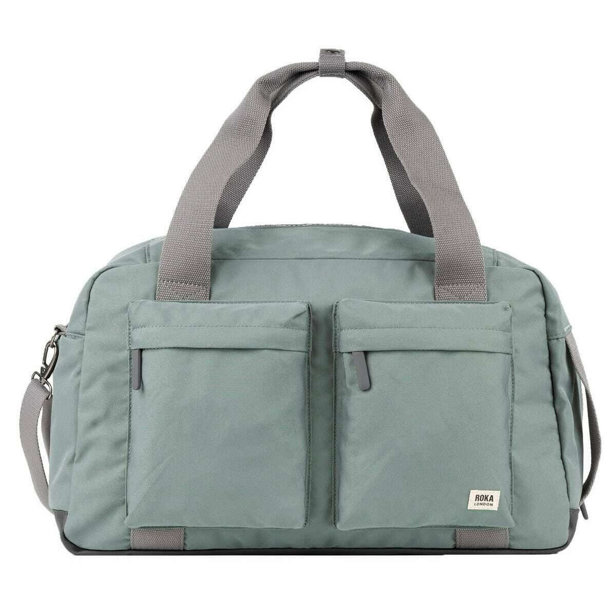 This unisex gatwick medium recycled canvas duffle bag by the brand Roka is made from 100% weather-resistant recycled canvas (triple coated) and is showcased in grey. It measures 30cm(height) x 51cm(width) x 21.5cm(depth). All the bags come complete with roka packaging. The Roka Gatwick Medium Recycled Canvas Duffle Bag - Pewter Grey is the ultimate travel companion as it features multi-functional straps and an array of pockets, keeping all your belongings organised on the move. Named after one of the busiest airports in the UK, it has been crafted with precision and style. Expertly crafted from recycled materials ensures this duffle is vegan and environmentally friendly as well has being water-resistant. Being able to fit in over head compartments, it is ideal for those shorter trips, and it features top handles, detachable shoulder strap, side grab handle, trolley sleeve, a waterproof pocket, padded laptop compartment that is accessible from the outside and one large main compartment. The perfect bag for stylish travel.