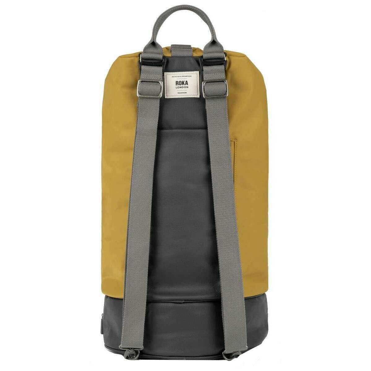 This unisex heathrow large recycled canvas duffle bag has been made from 100% weather-resistant recycled nylon (triple coated), featured in a yellow colour and is from the brand Roka. It measures 56cm(height) x 38cm(width) x 30.5cm(depth). All the bags come complete with roka packaging. The Roka Heathrow Large Recycled Canvas Duffle Bag - Corn Yellow is named after one of the busiest airports in the UK and is the perfect travel companion as this edgy duffle seamlessly transitions from a gym bag to a carry-on. The multi-functional straps enable you to carry whichever way you please, making it a truly versatile duffle, perfect for storing any items, at any time. The waterproof coated base compartment and multi-functional pockets keeps your items safe and secure whilst on the move and it is certainly environmentally-friendly as it has been manufactured from recycled materials. Travel in style with this truly exquisite duffle bag.