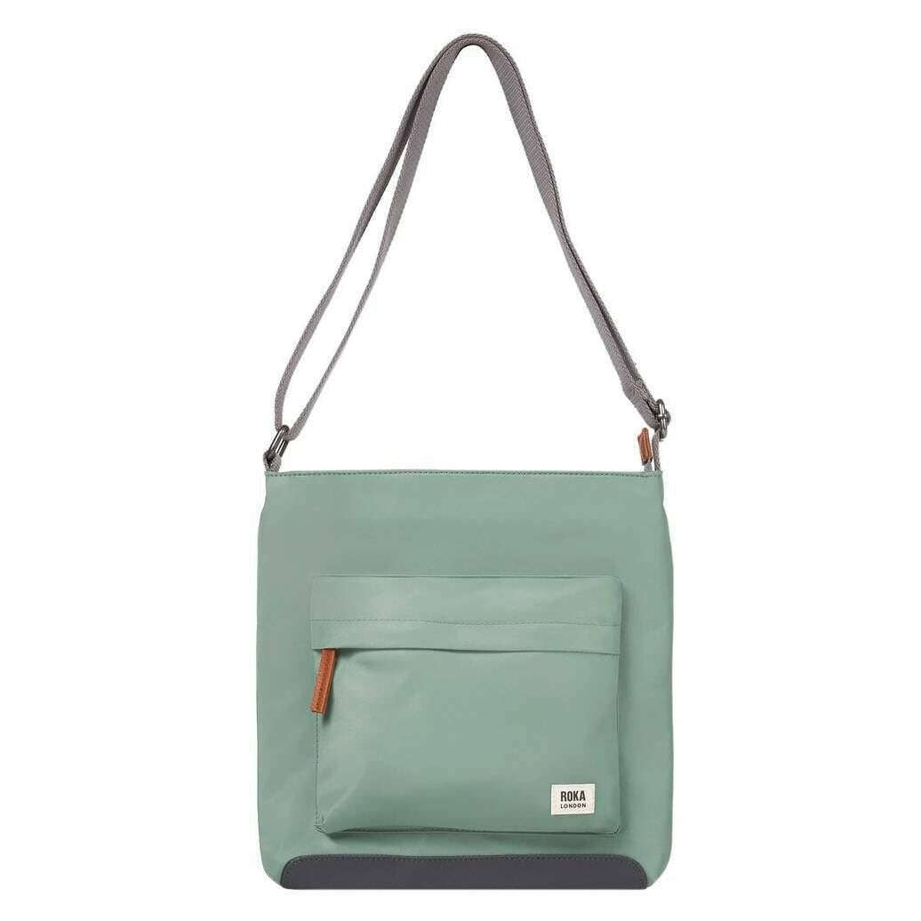 This unisex kennington b medium recycled nylon crossbody bag has been made from 100% recycled nylon (triple-coated), featured in a green colour and is from the brand Roka. It measures 30cm(height) x 2.5cm(width) x 30cm(depth). All the bags come complete with roka packaging. The Roka Kennington B Medium Recycled Nylon Crossbody Bag - Frost Green combines the functionality you love with features you can count on. This square shaped crossbody bag keeps all your daily essentials safe and secure as it features a zipped font pocket, back pockets and zipped main compartment. Additional inside pockets are perfect for organising your items, allowing you quick and easy access. The adjustable crossbody strap makes carrying easy and convenient when on the go. Going hands-free has never been more stylish. Take anywhere with you as the water-resistant, durable material will keep your belongings safe. Crafted from recycled nylon, this bag has been made using environmentally friendly, sustainable materials so you can be sure it is kind to the environment.